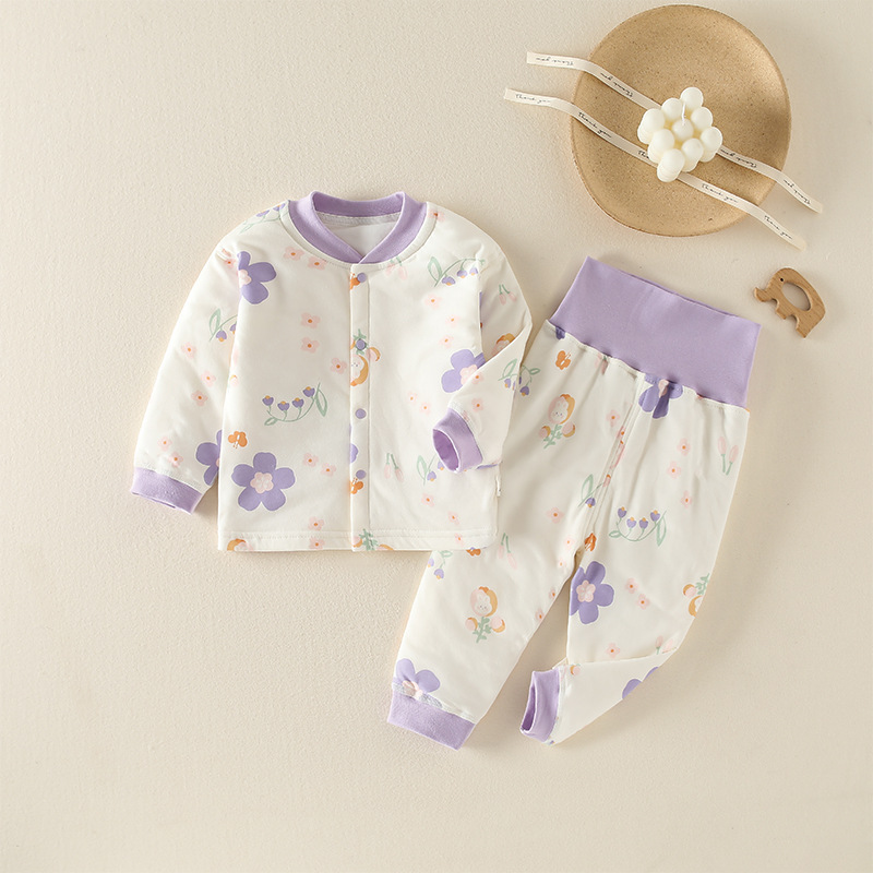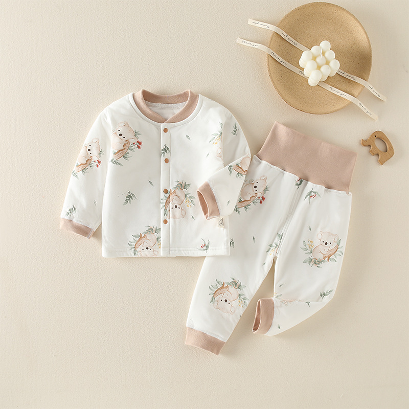 婴幼儿衣服60g夹棉保暖纯棉内衣男女宝宝分体高腰护肚套装卡通