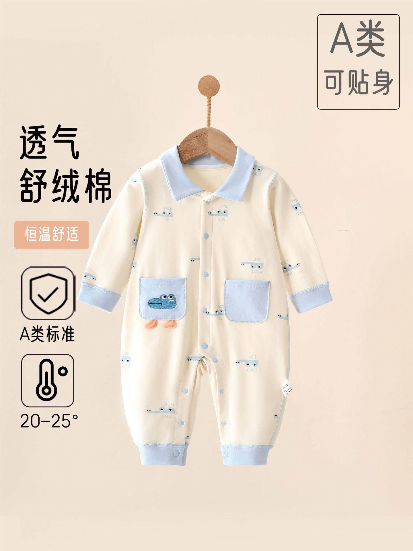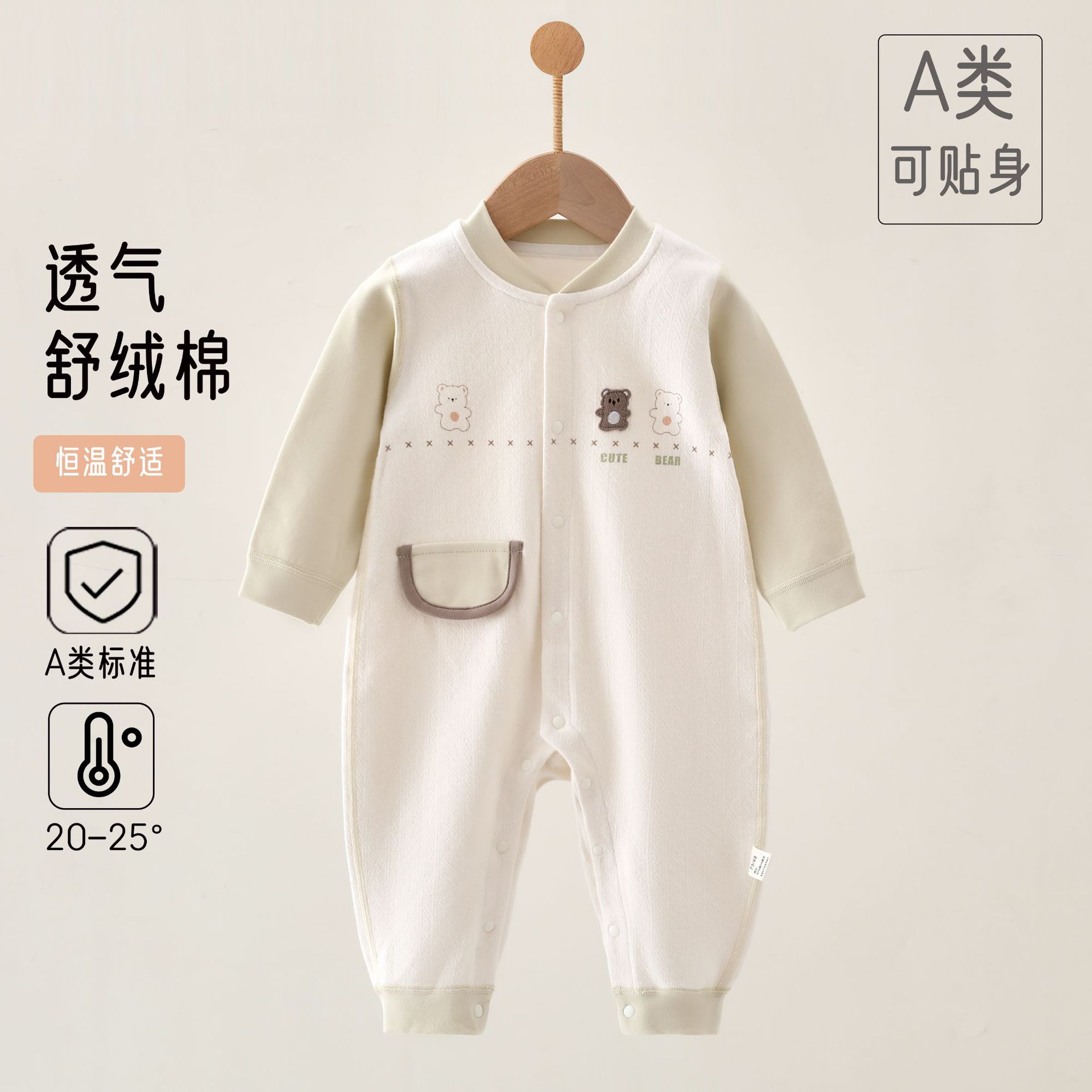 新生儿衣服四季宝宝连体衣婴幼儿舒绒无骨纯棉长袖哈衣爬服外出服