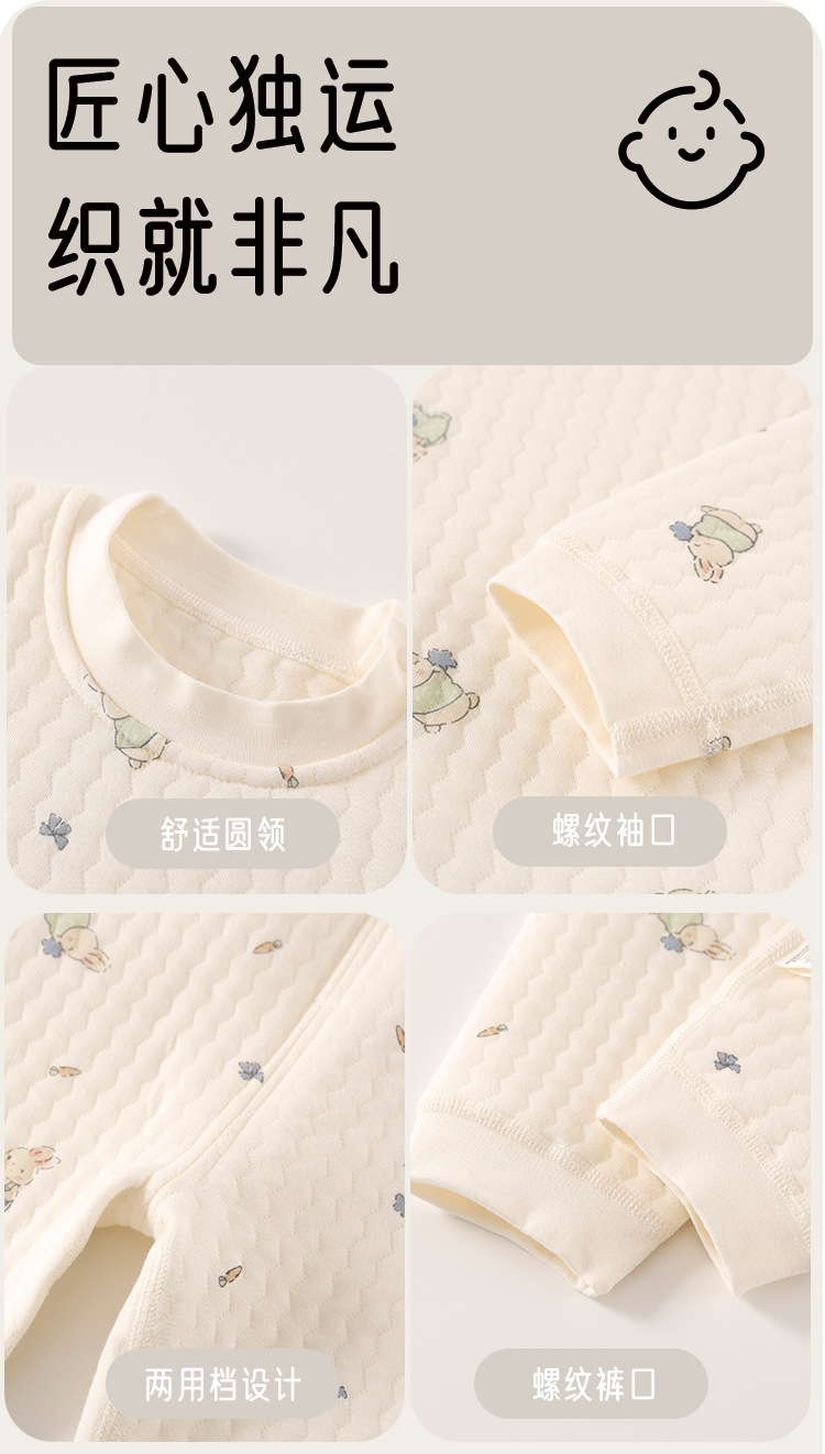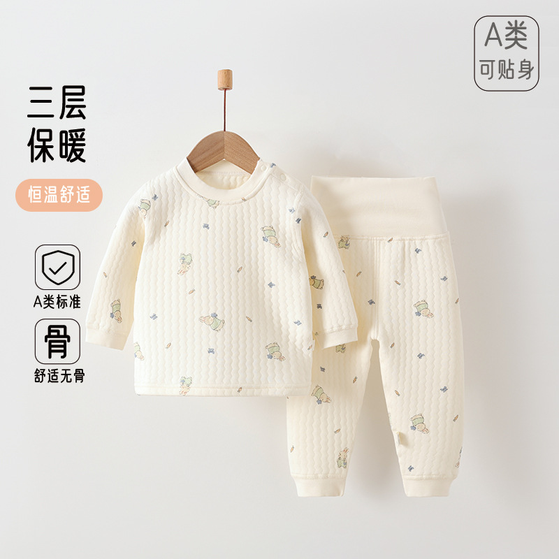 婴幼儿保暖衣服秋冬三层保暖高腰护肚新生儿男女宝宝纯棉分体套装