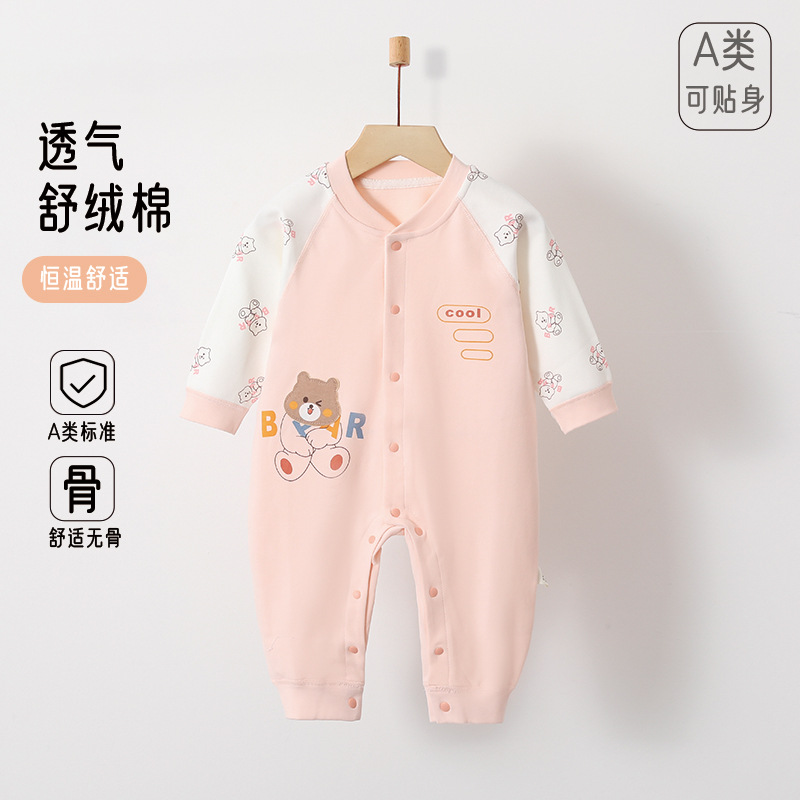 新生婴儿春秋款纯棉无骨连体衣男女宝宝舒绒长袖哈衣爬服外出衣服