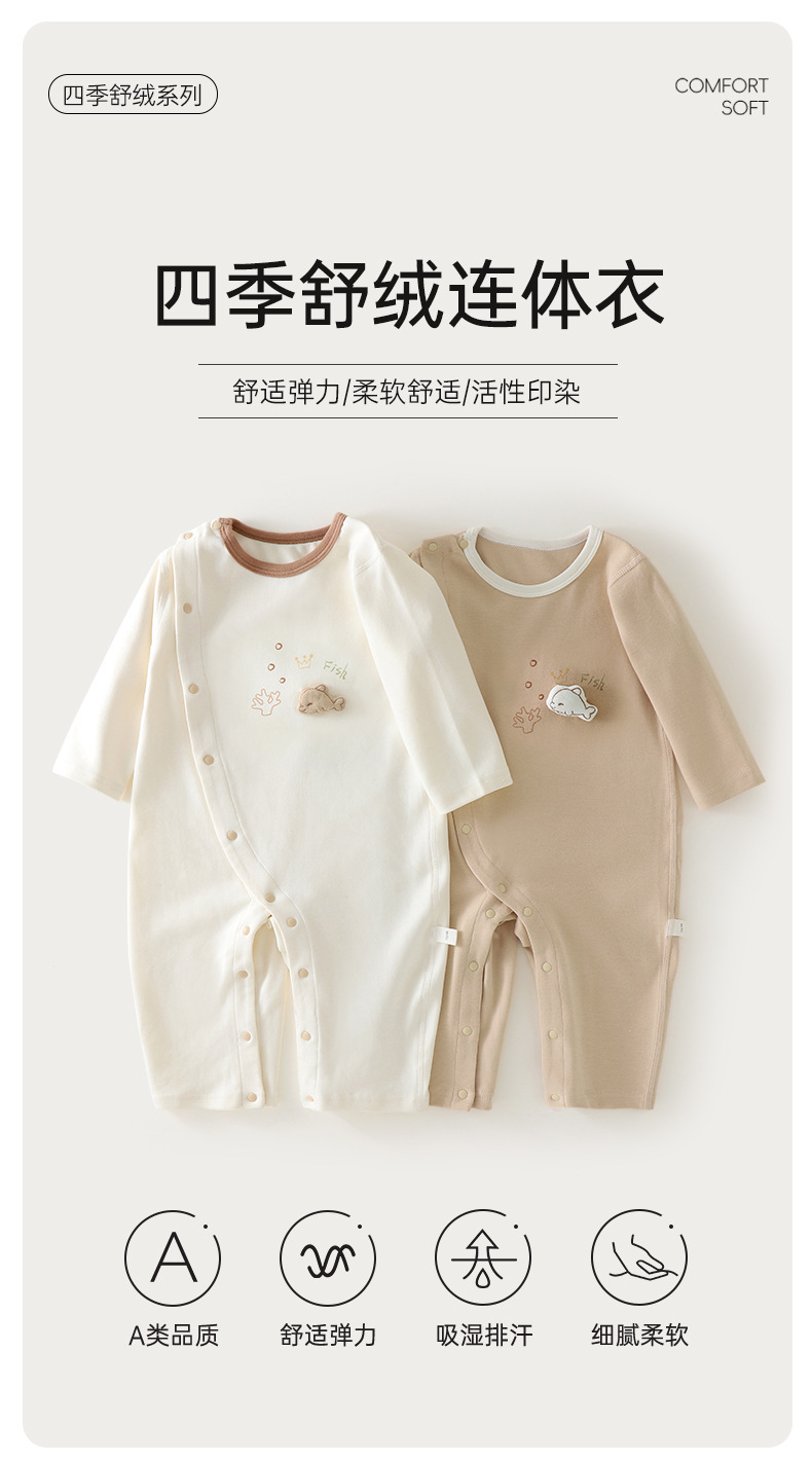 婴儿连体衣春季外出服a类新生儿春装宝宝爬爬服舒绒婴儿衣服