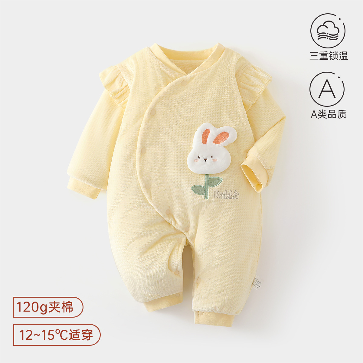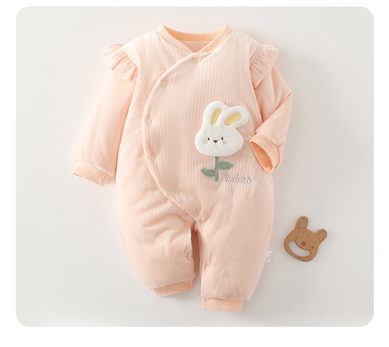 新生儿连体衣秋冬夹棉保暖哈衣宝宝爬服初生宝宝可爱动物蝴蝶衣