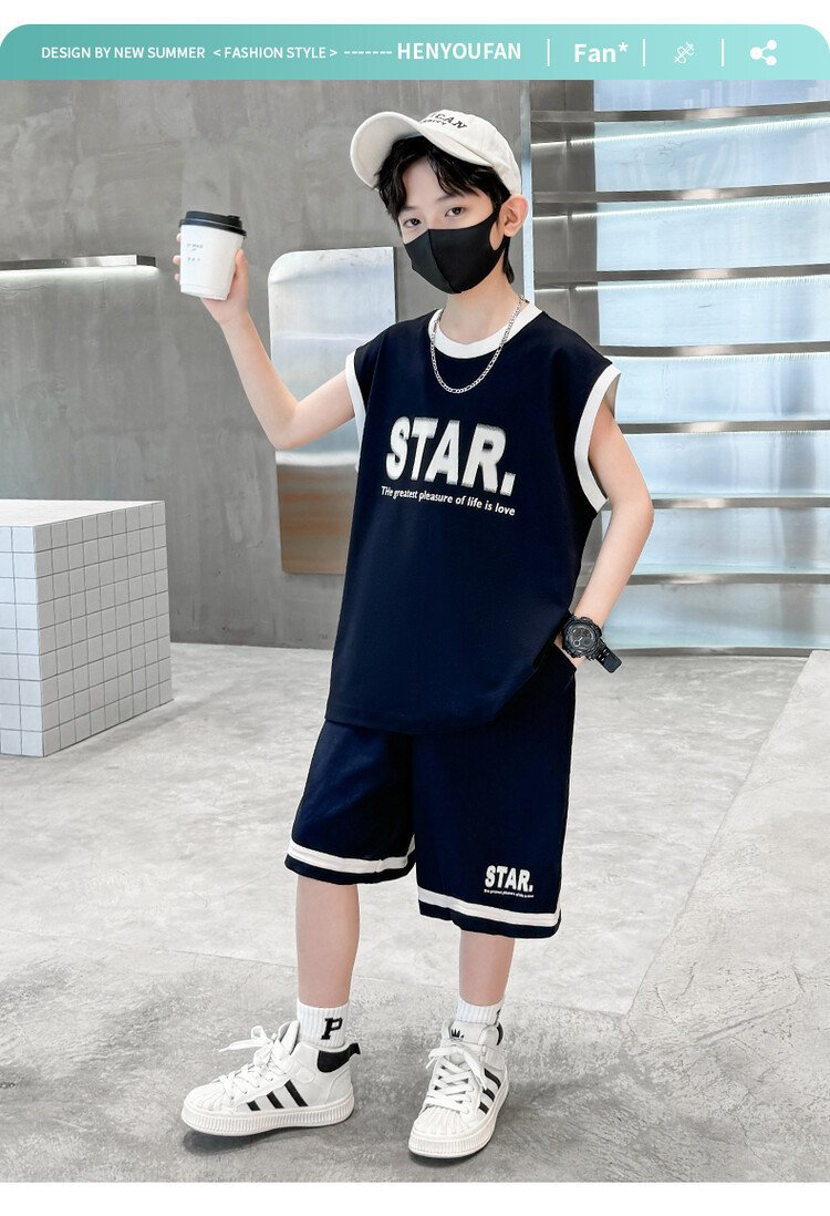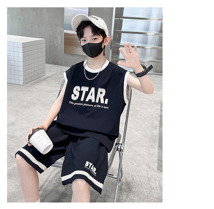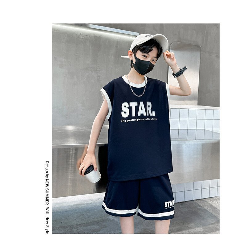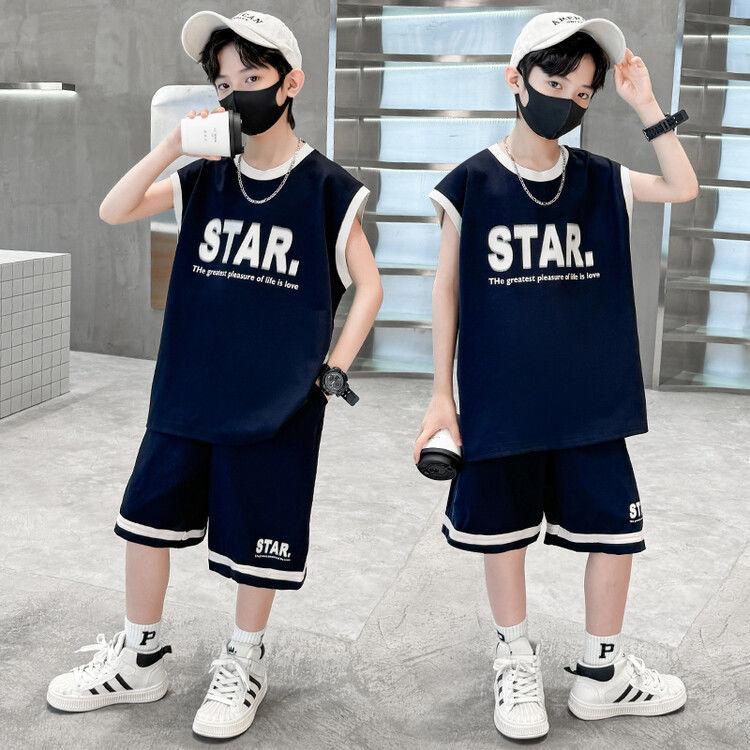 男童夏装套装篮球服2025新款夏季无袖时尚透气儿童夏款运动休闲背