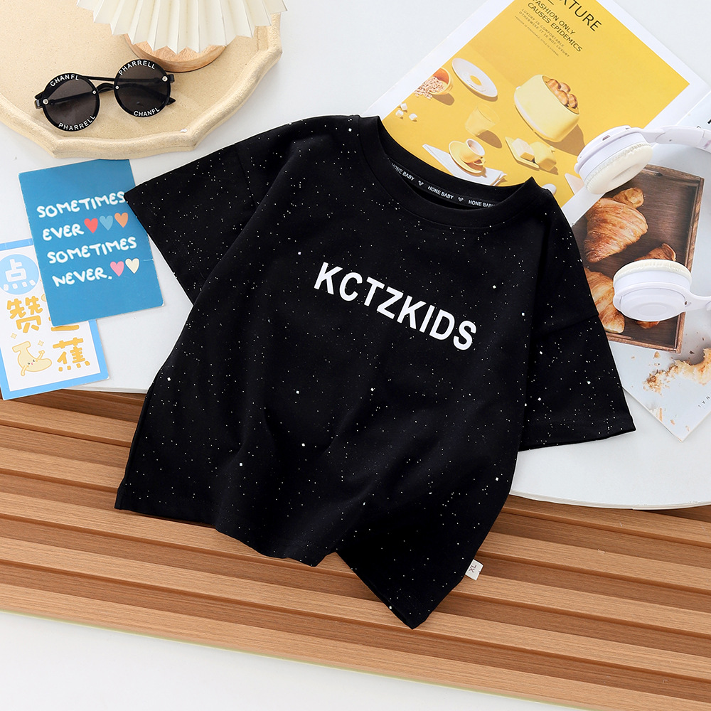 男童T恤短袖夏季2025韩版儿童夏装洋气中小童半袖上衣撒银网红潮