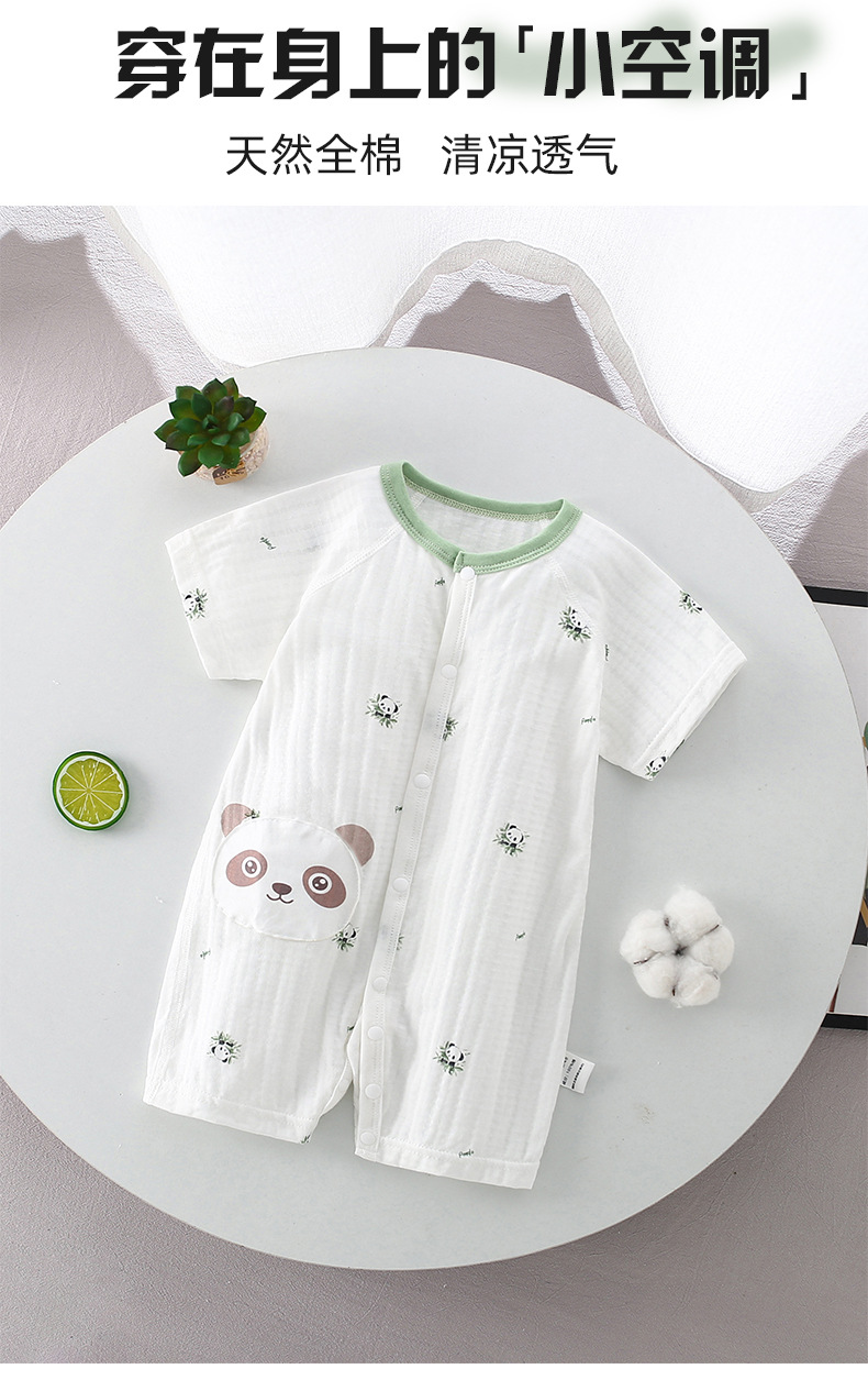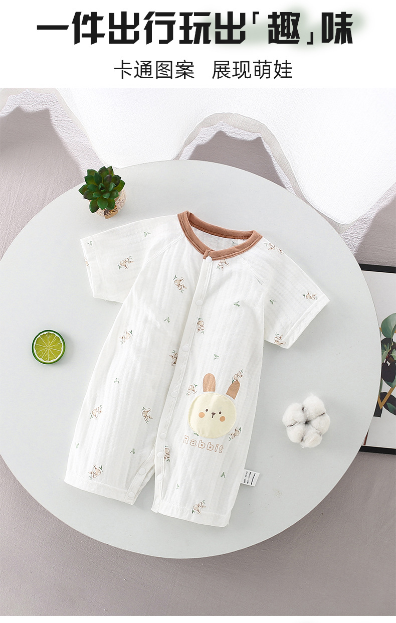 婴儿短袖睡衣夏季薄款全棉男女宝宝衣服半袖哈衣爬爬服婴儿连体衣
