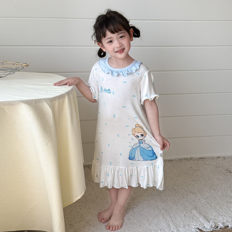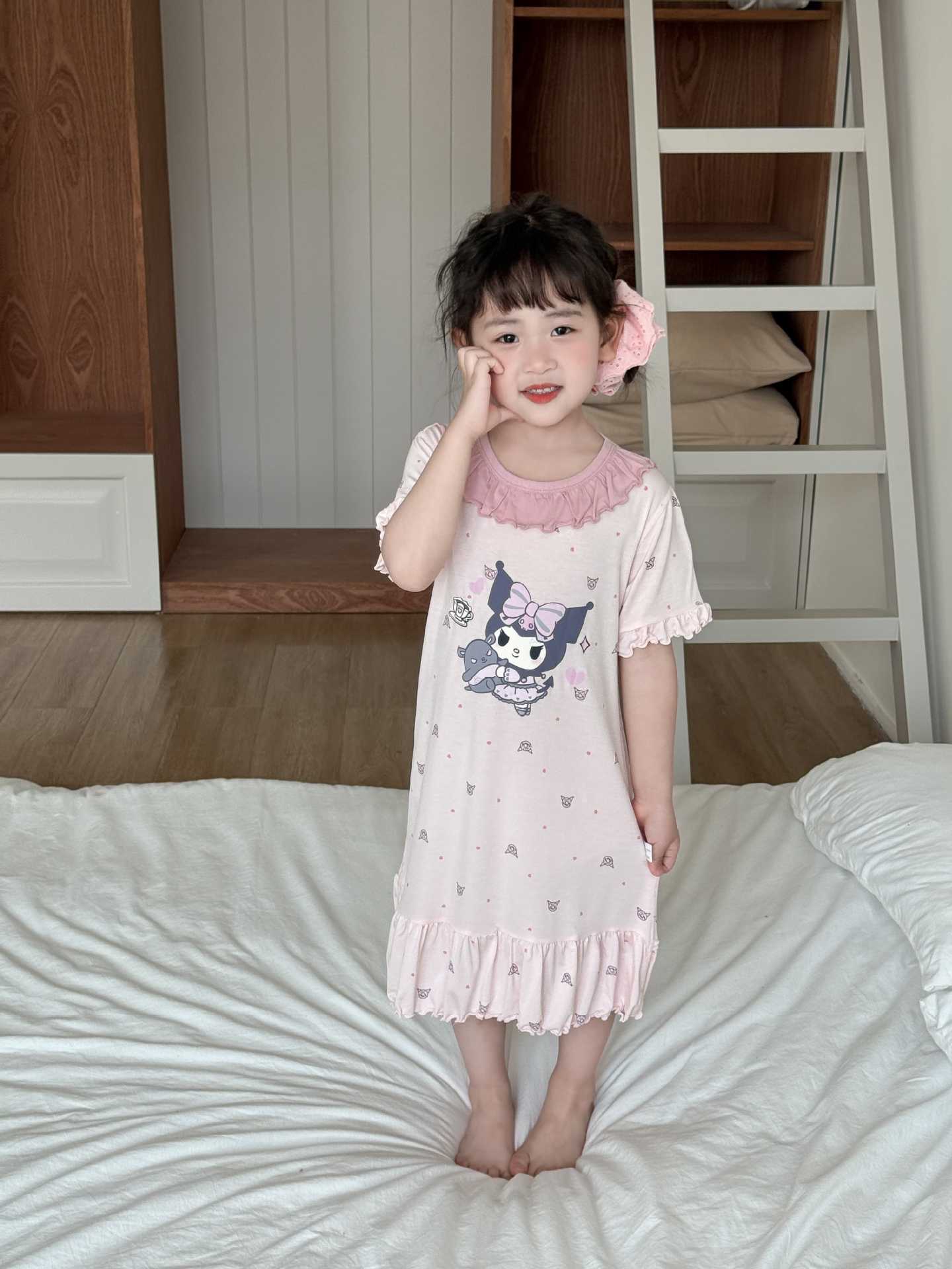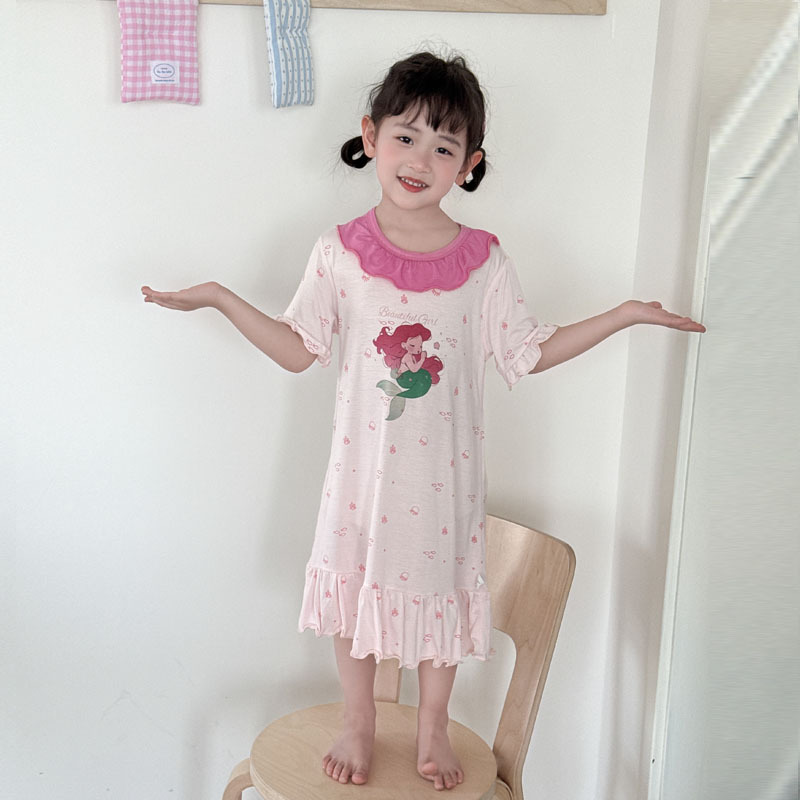 定制儿童睡裙女夏女大童睡裙童装连衣裙荷叶领宝宝裙子洋气高级感