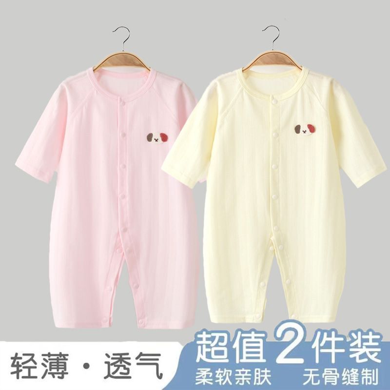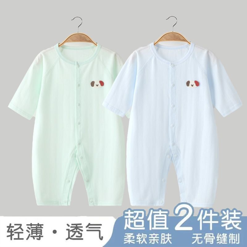 婴儿连体衣夏季薄款睡衣新生儿家居服宝宝纯棉空调服长袖哈衣爬服