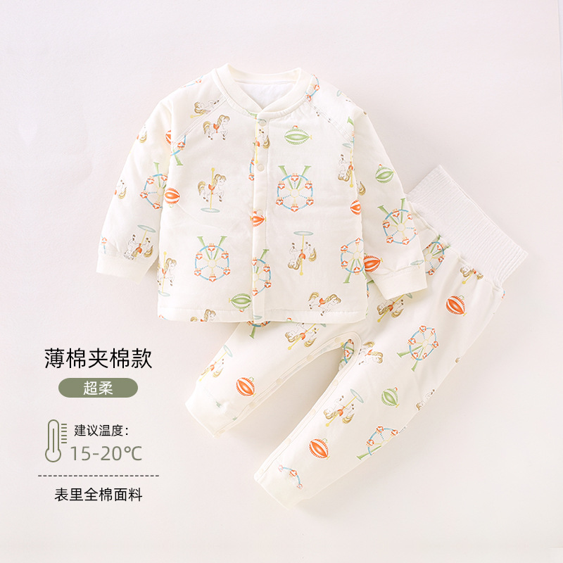 婴儿套装秋冬季40g薄棉无骨开衫睡衣新生儿秋衣秋裤宝宝内衣套装