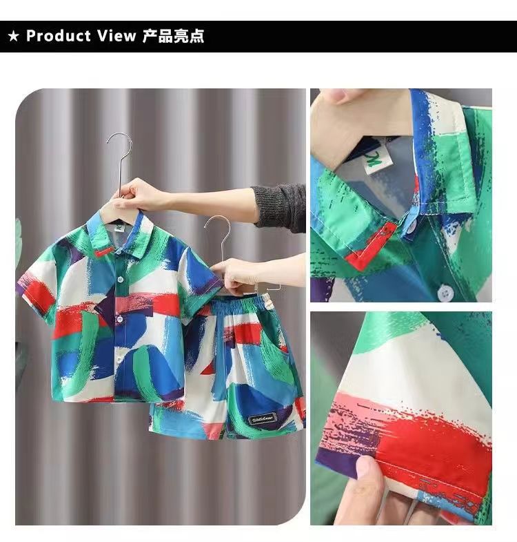 男童夏装套装2025新款儿童夏季短袖衬衫中大童男孩夏款洋气两件套