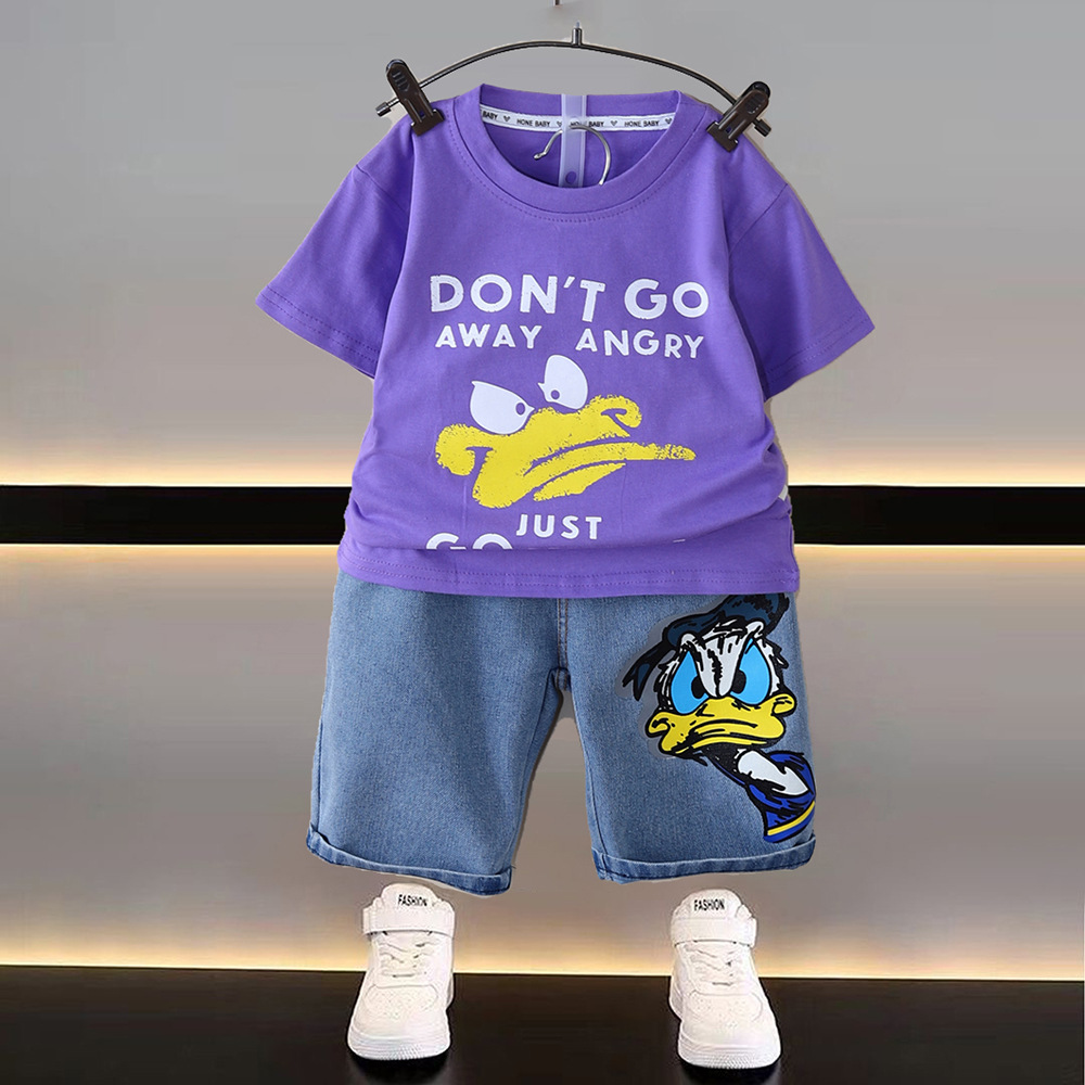男童套装儿童炸街短袖T恤2025新款洋气男孩宝宝夏季时髦牛仔短裤