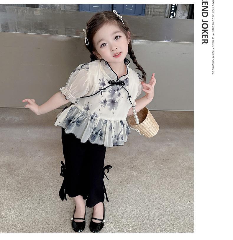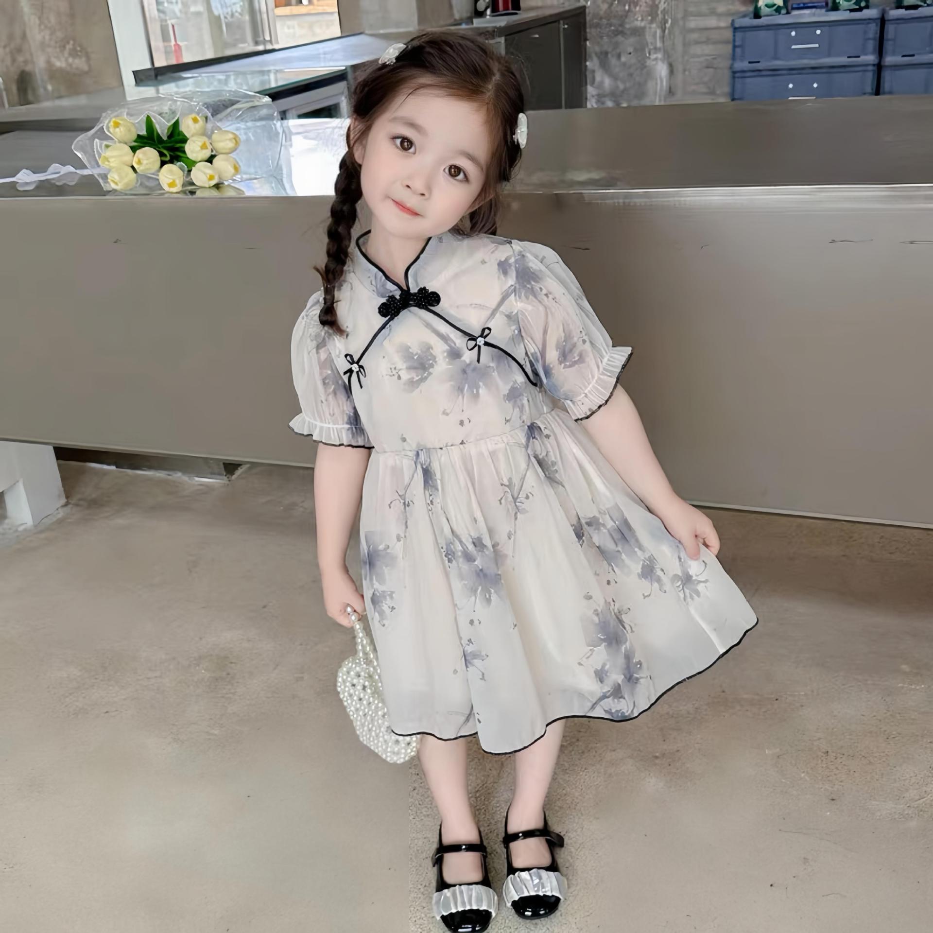 女童连衣裙2025新款套装洋气古风汉服宝宝夏季水墨画唐装两件套