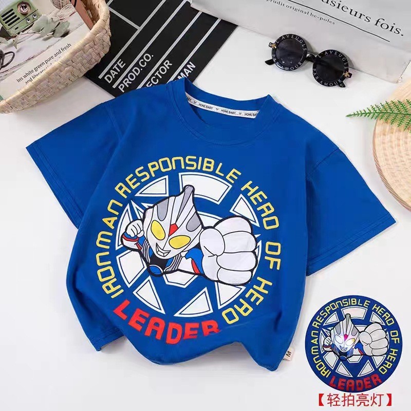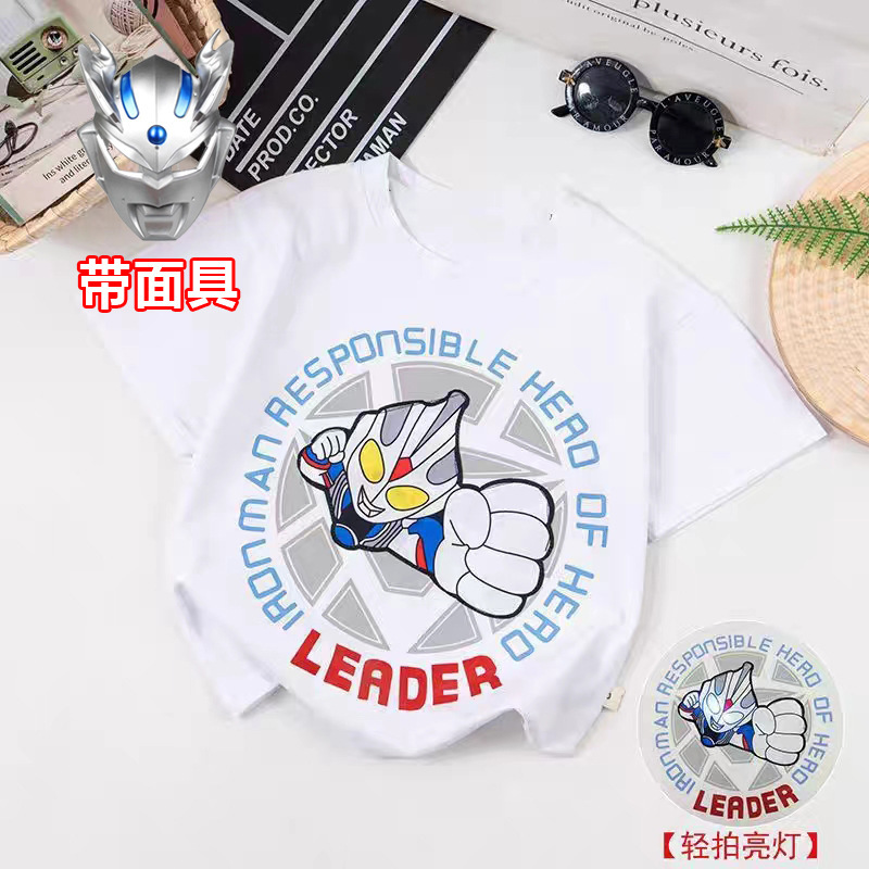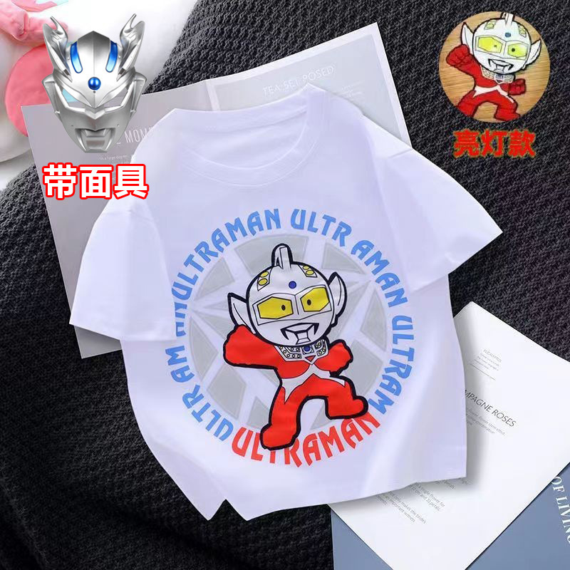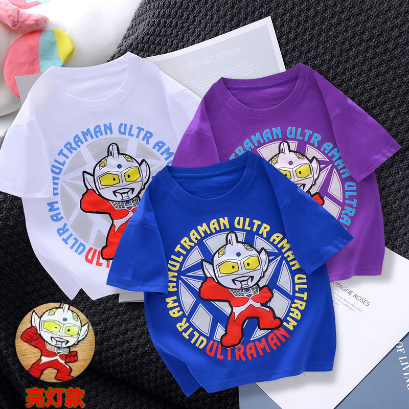 夏季短袖夏款童装宝宝卡通会发光奥特曼儿童T恤批发潮流一件代发