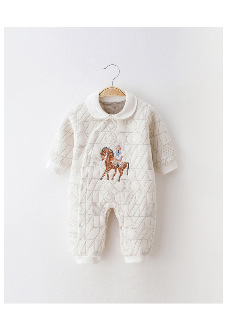 婴儿连体衣服秋冬内搭加厚新生儿哈衣夹棉薄棉衣冬天宝宝居家冬装