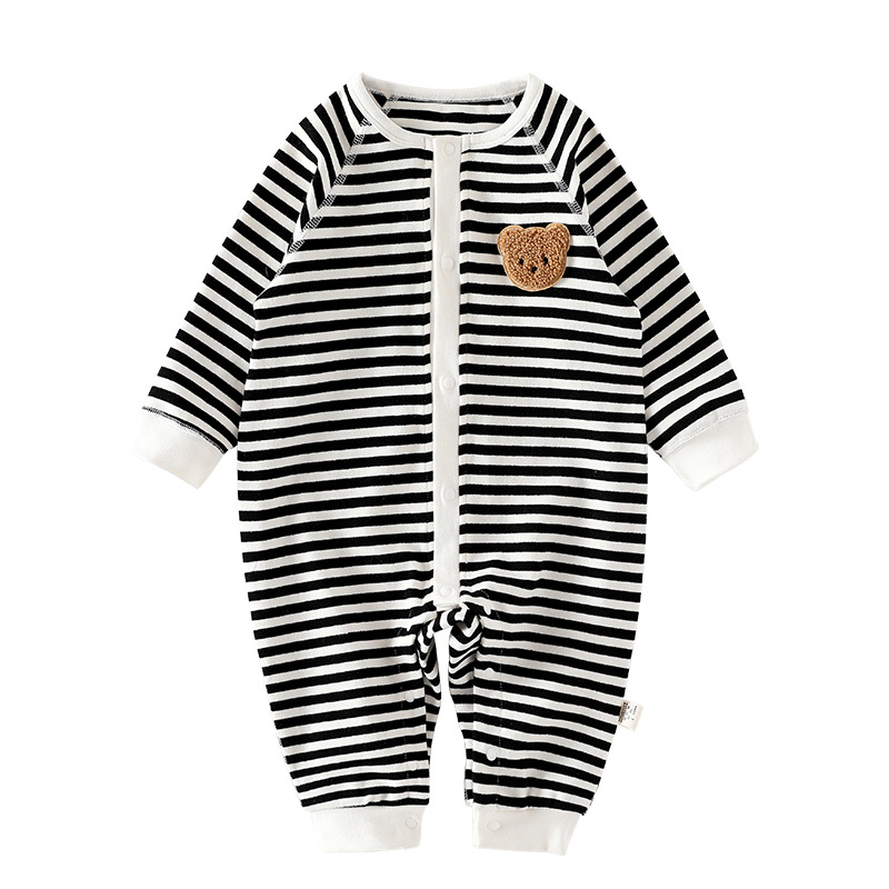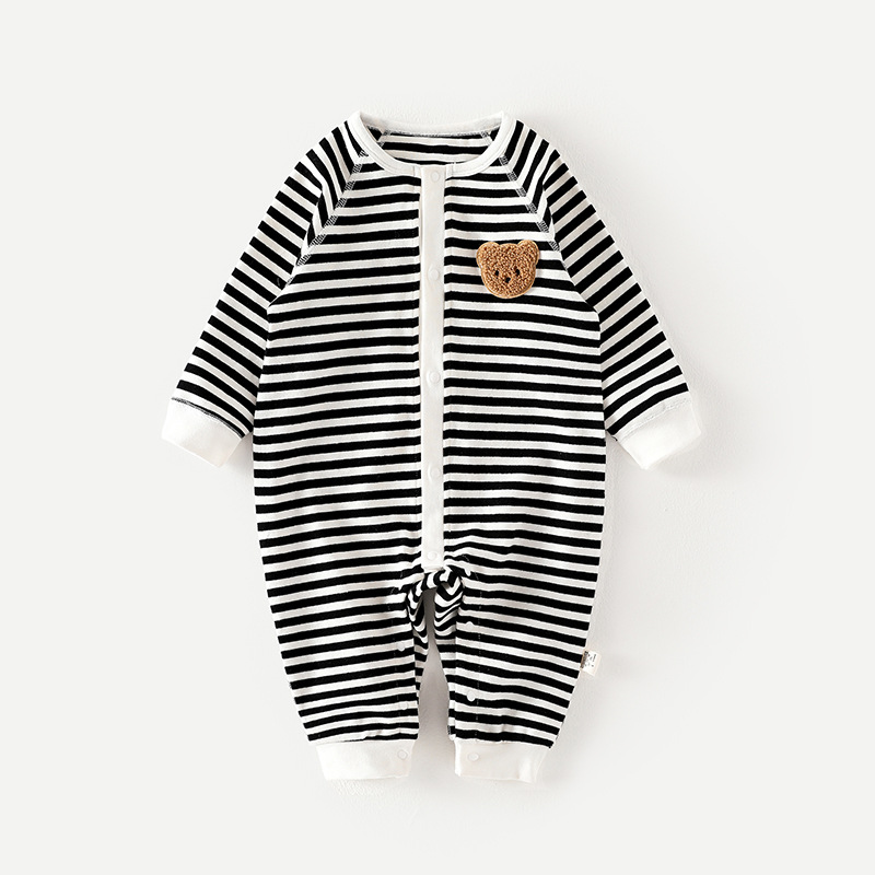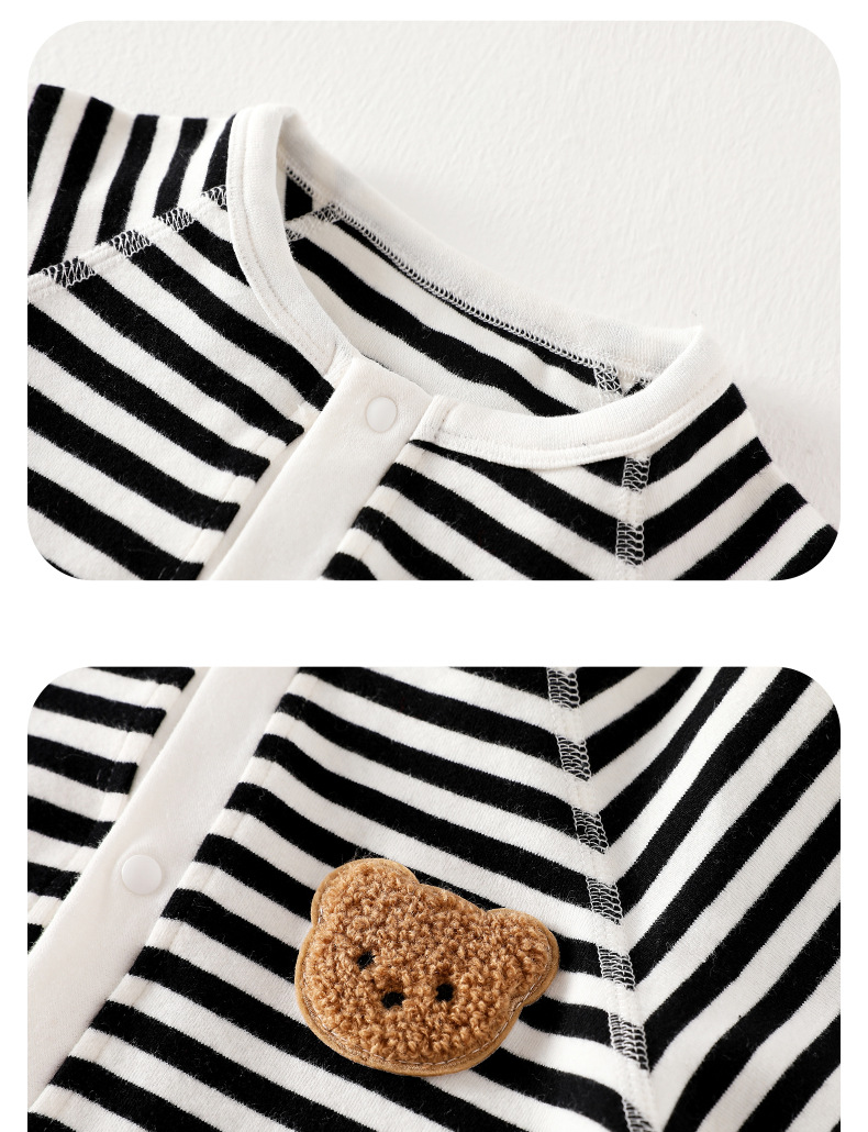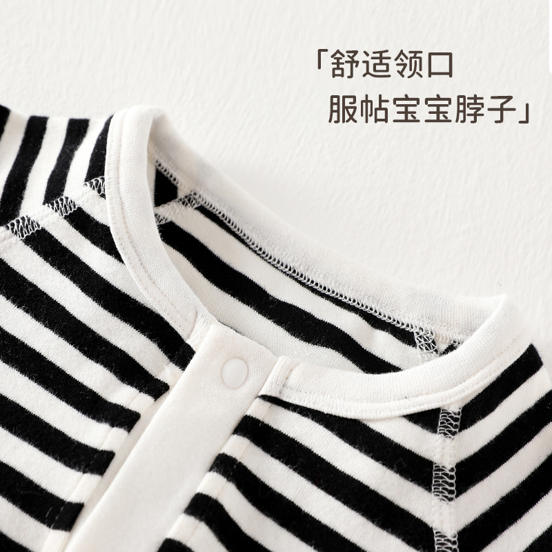 春秋新款婴儿衣服长袖连体衣新生儿衣服婴幼可爱宝宝服装条纹圆领