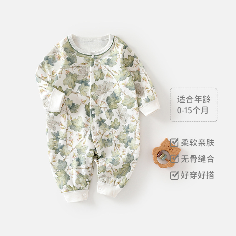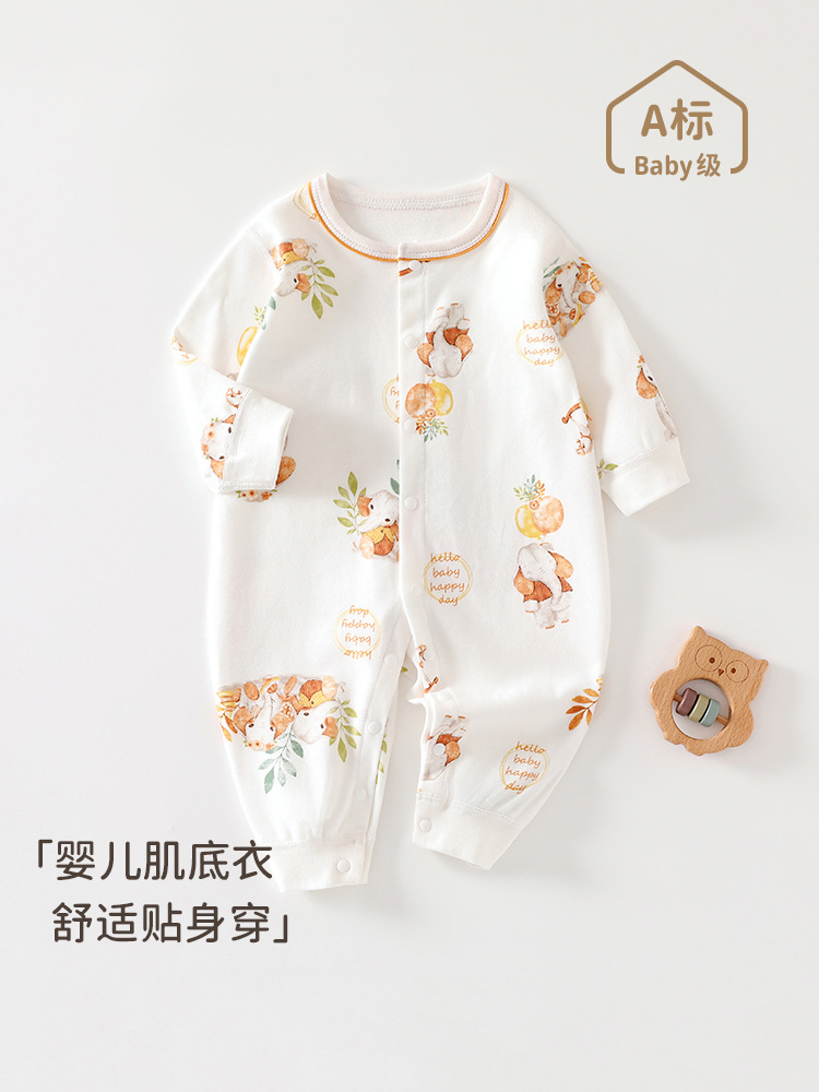 春秋季新生婴儿连体衣男女宝宝a类衣服纯棉睡衣秋季长袖哈衣爬服