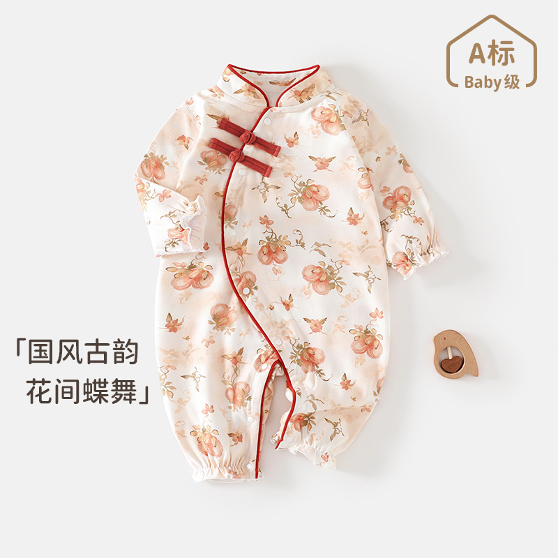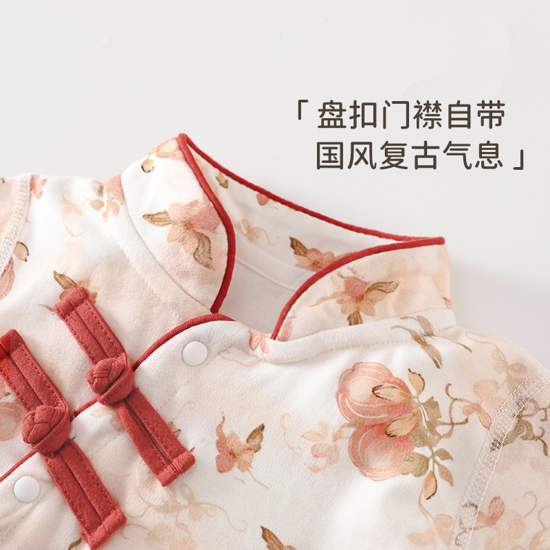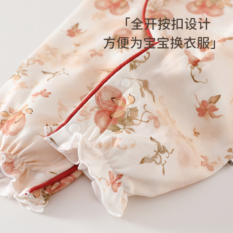 婴儿连体衣纯棉哈衣女宝宝秋装公主风甜美哈衣新生儿中国风爬爬服