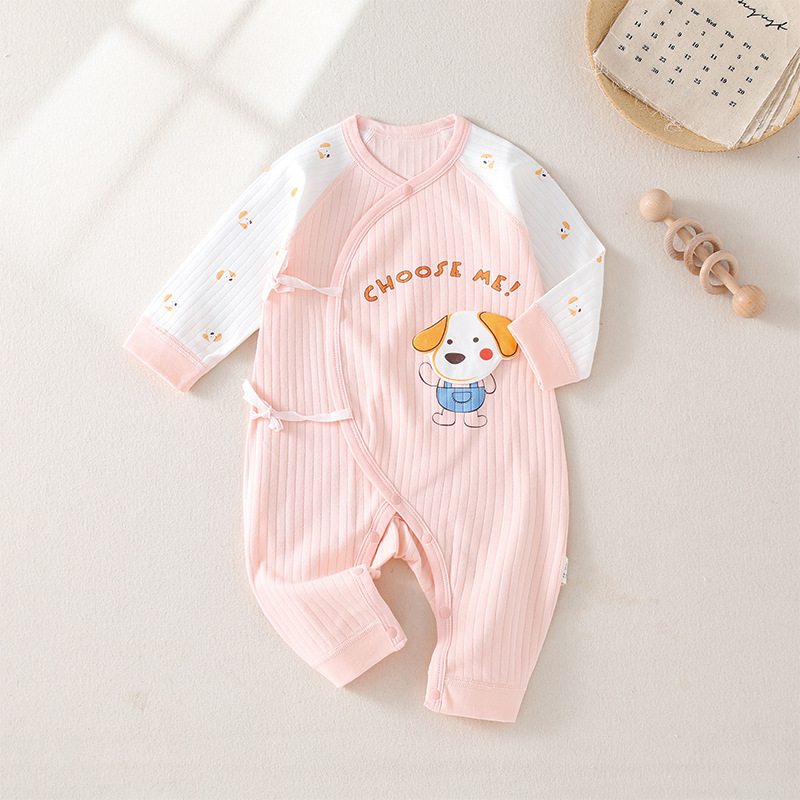 婴儿偏襟系绳双层护肚衣服男女宝宝连体衣新生儿哈衣爬服长袖无骨