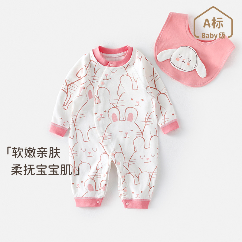 婴儿连体衣春秋装纯棉围嘴哈衣服无骨可爱长袖卡通男女宝宝爬服