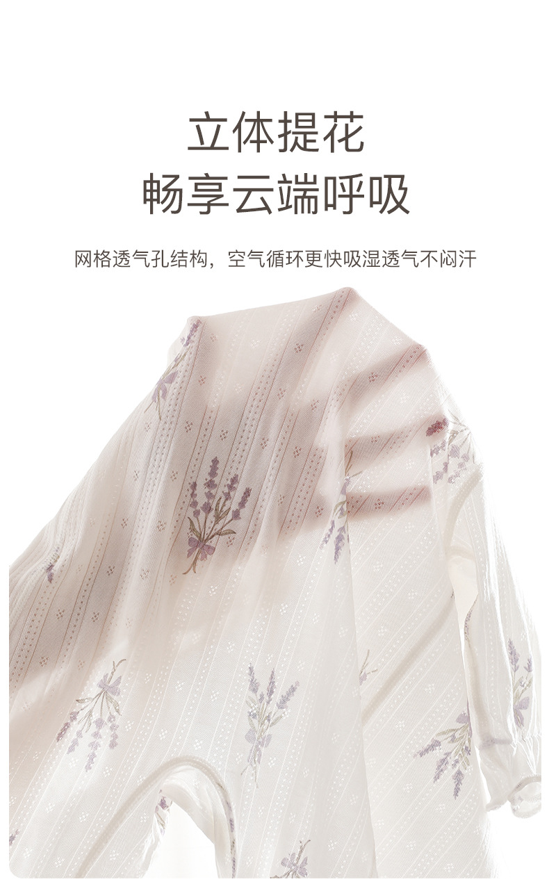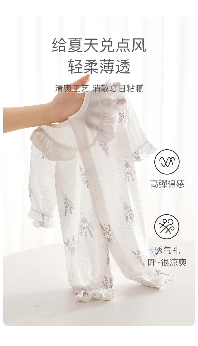 婴儿长袖连体衣夏季薄款女宝宝长袖空调服睡衣新生儿花边透气衣服