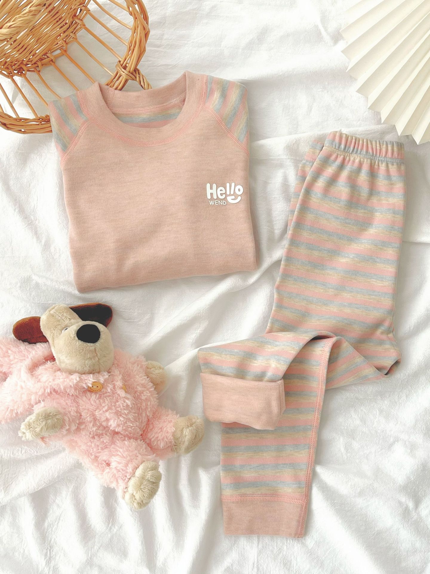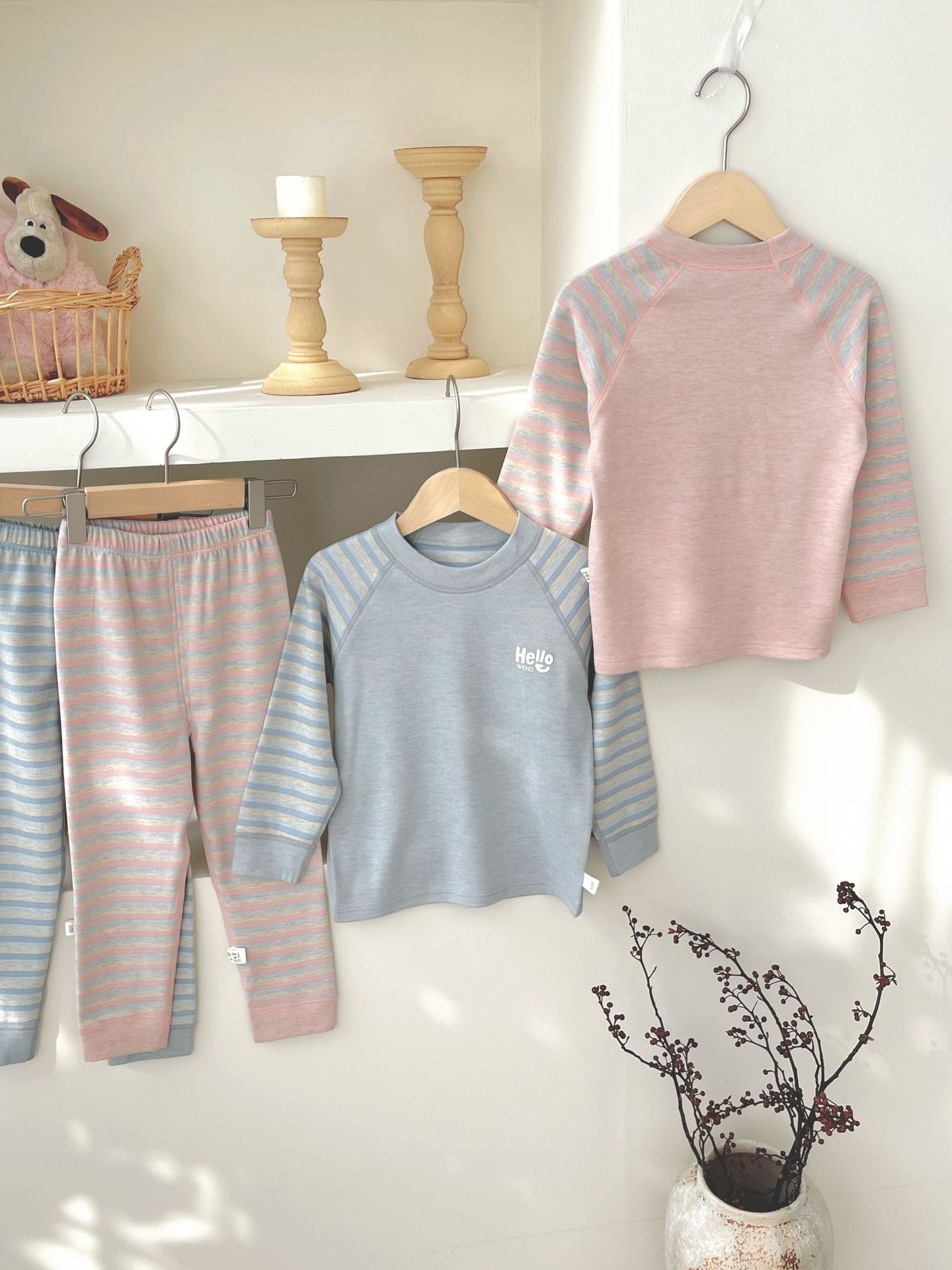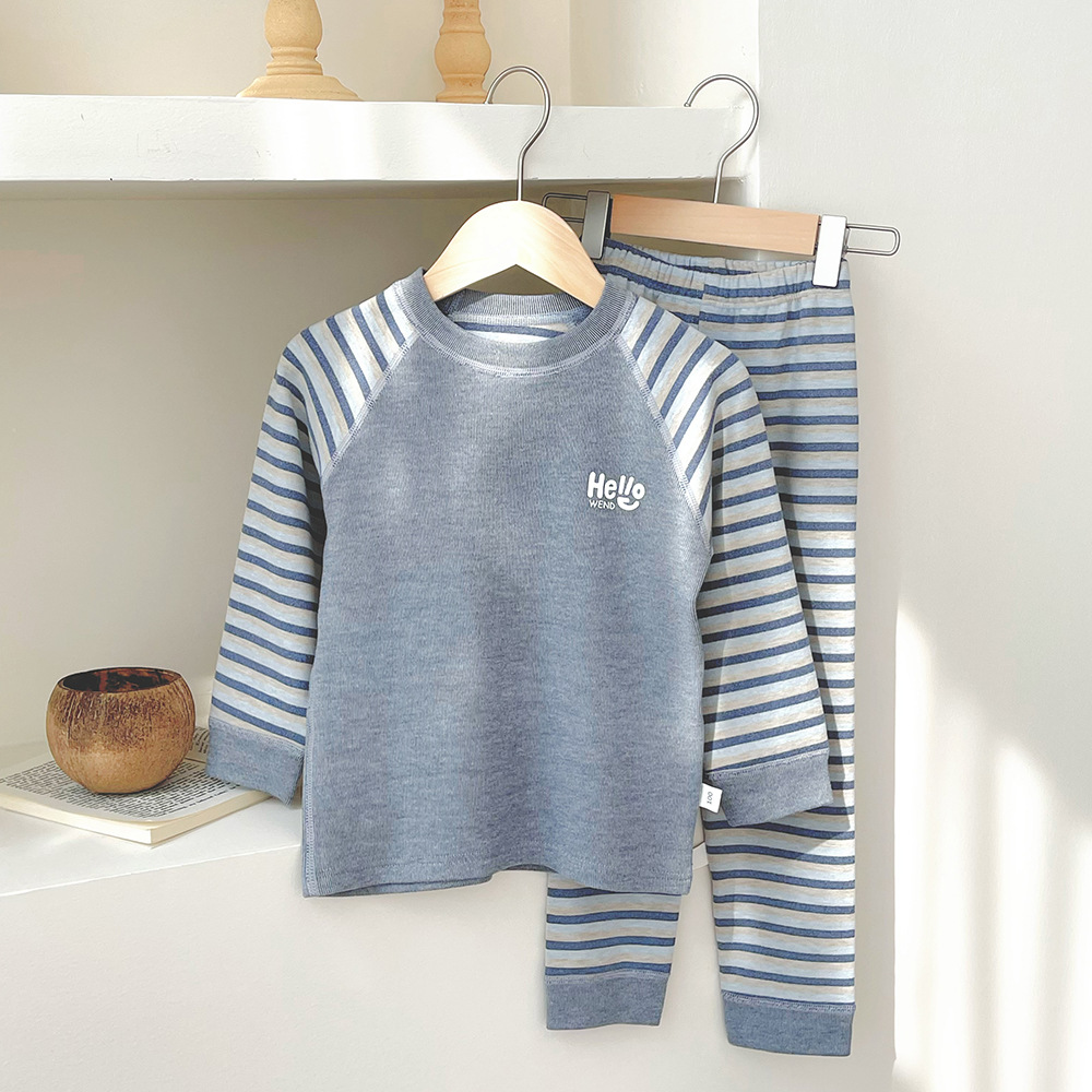 儿童内衣蚕丝羊绒350g秋冬新款条纹小高领套装男女童保暖内衣无骨