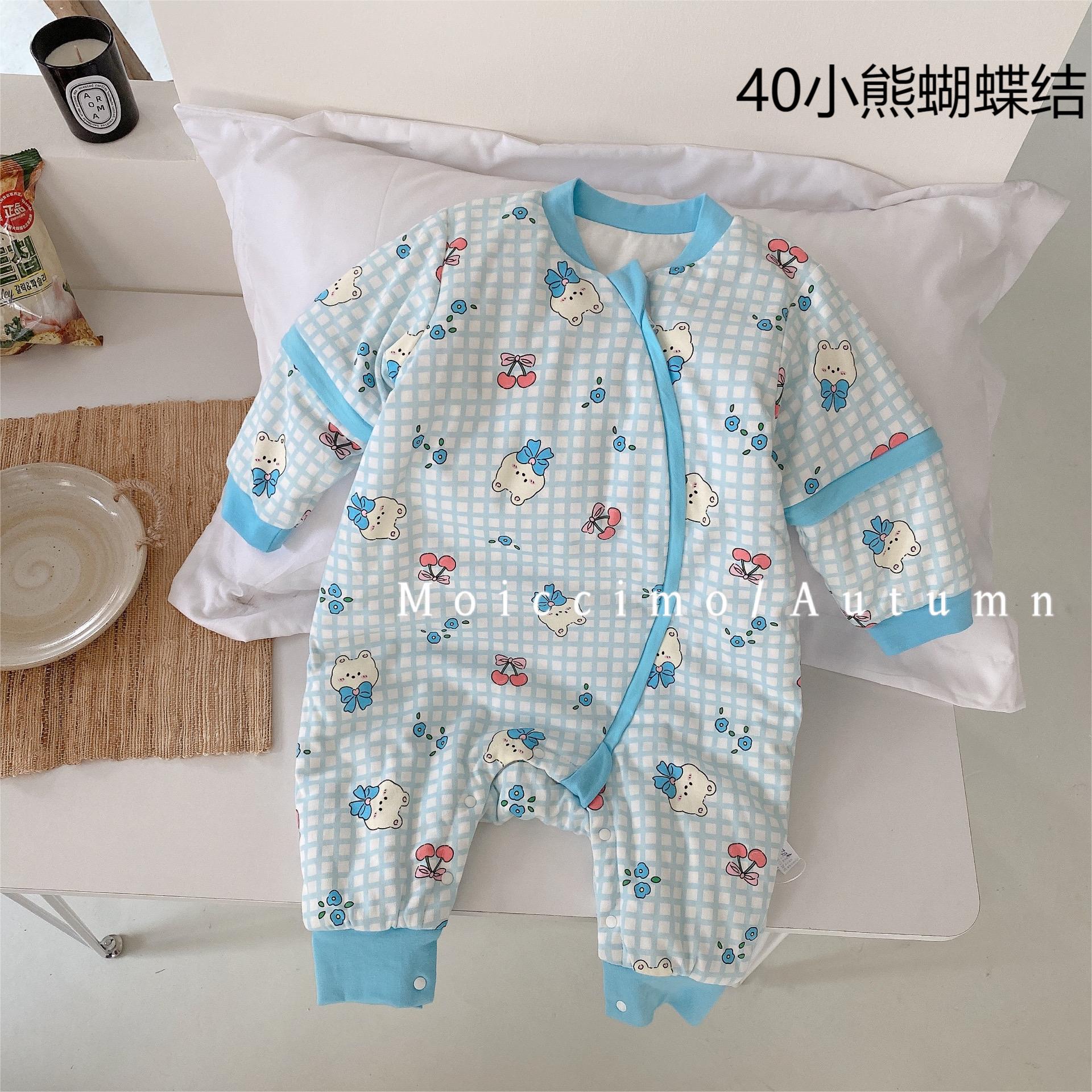 新生儿春秋连体衣衣服婴儿斜襟蝴蝶衣纯棉无骨宝宝哈衣洋气