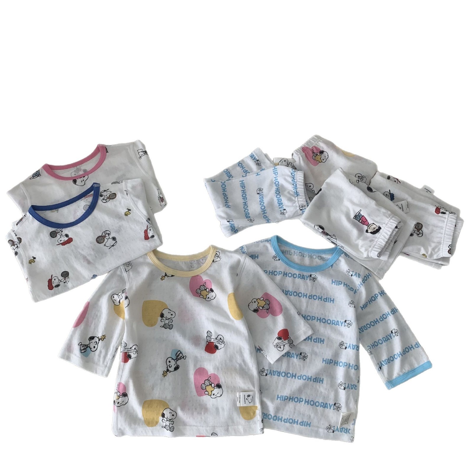 史努比童装儿童夏季空调服家居服儿童95棉a类睡衣七分袖裤套装薄