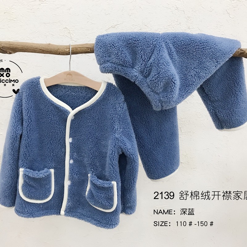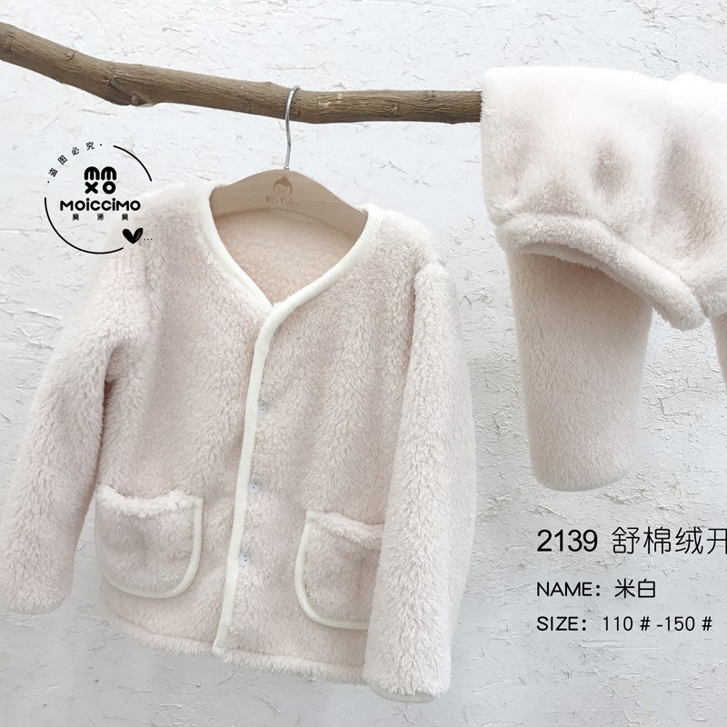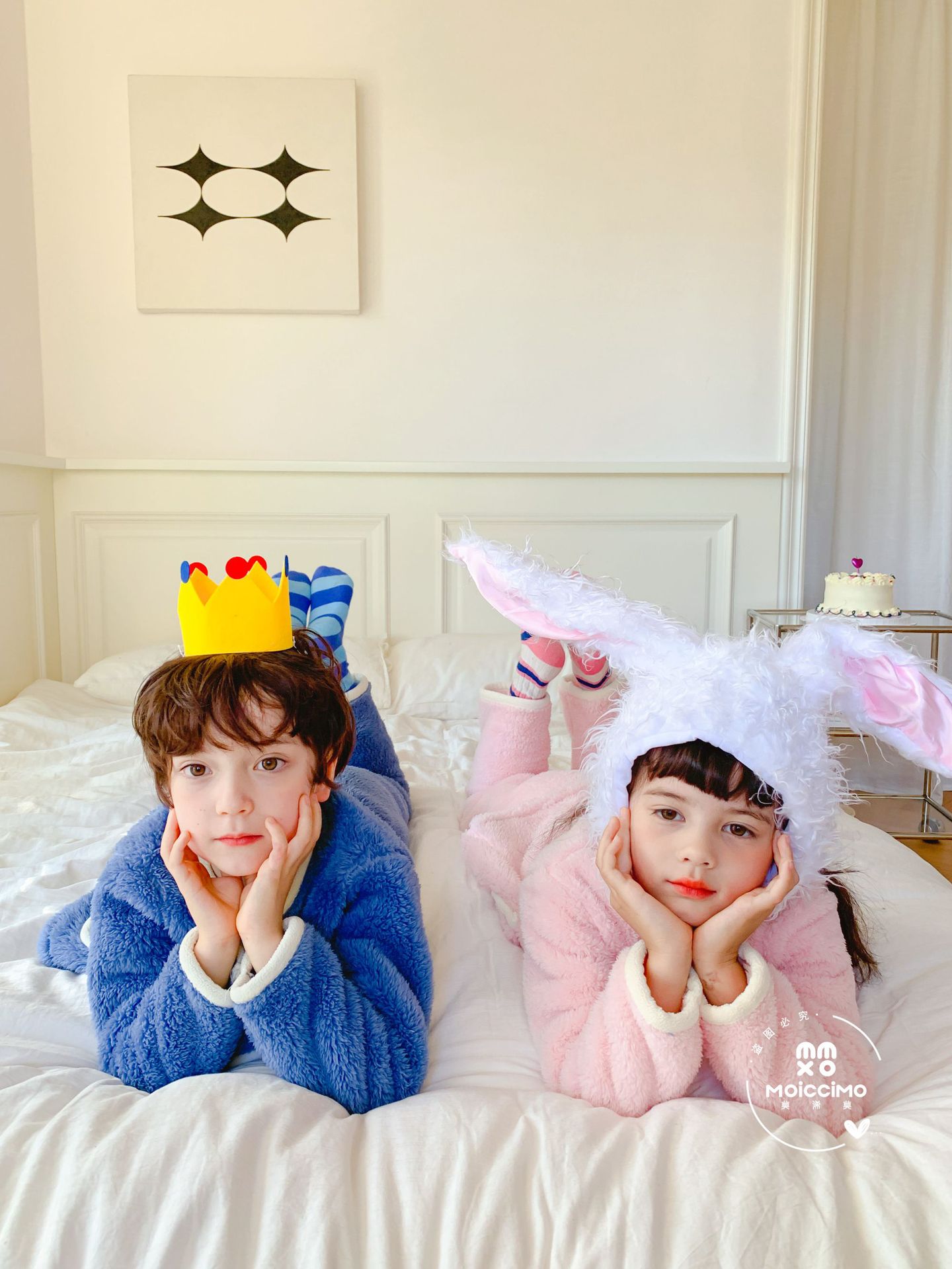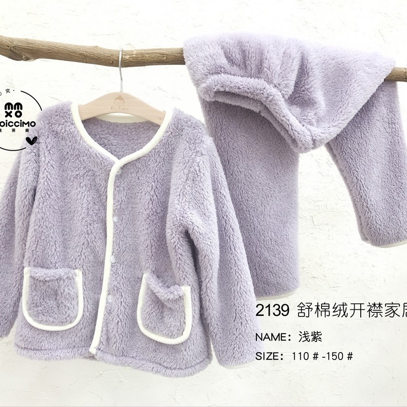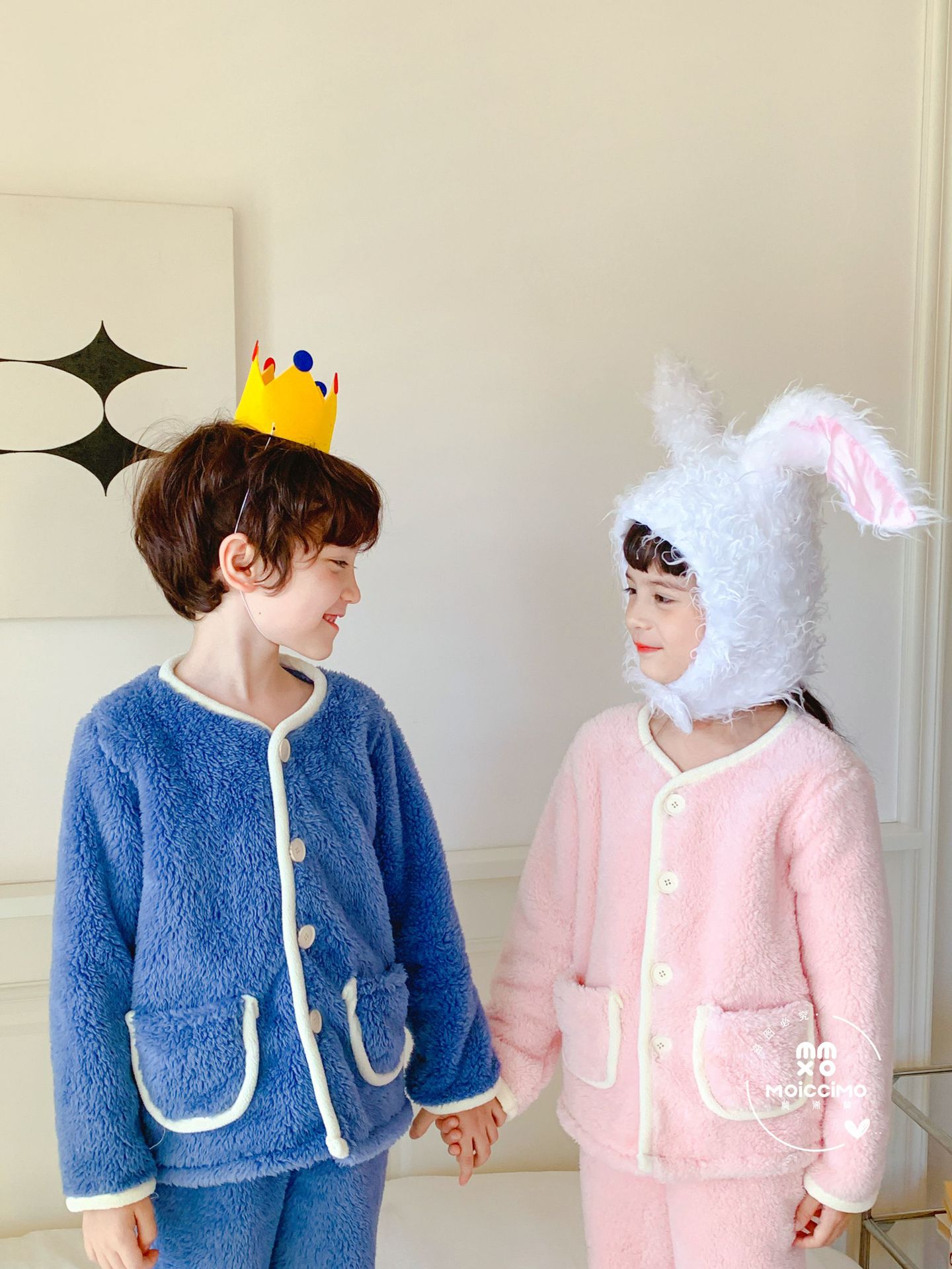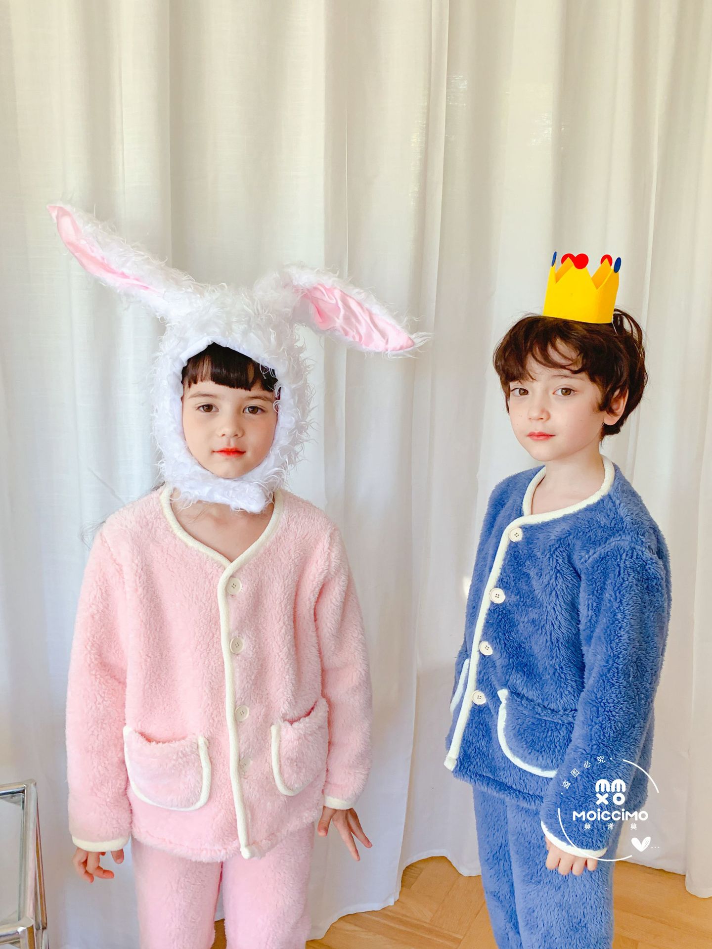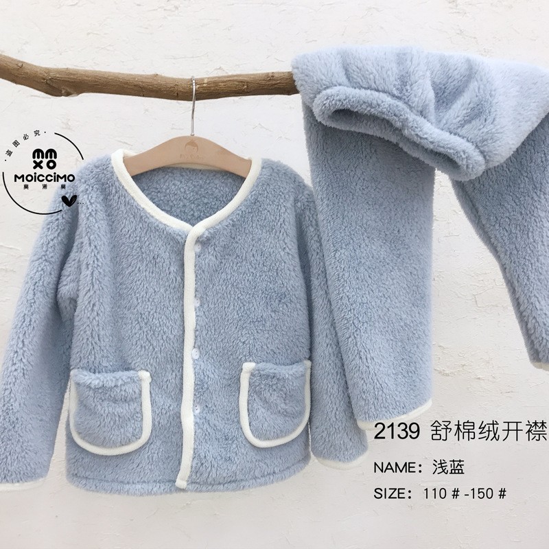 儿童法兰绒开衫套装秋冬款加厚保暖2024男女童睡衣二件套毛绒绒