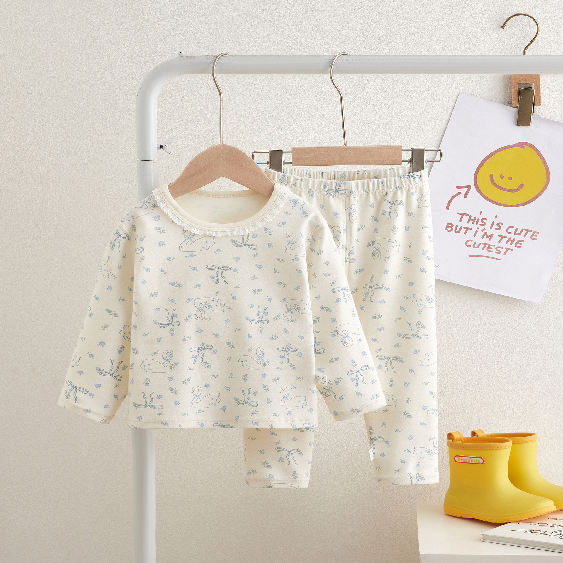 儿童睡衣羊毛拉架秋衣套男女童加厚中小童宝宝秋衣裤a类棉家居服