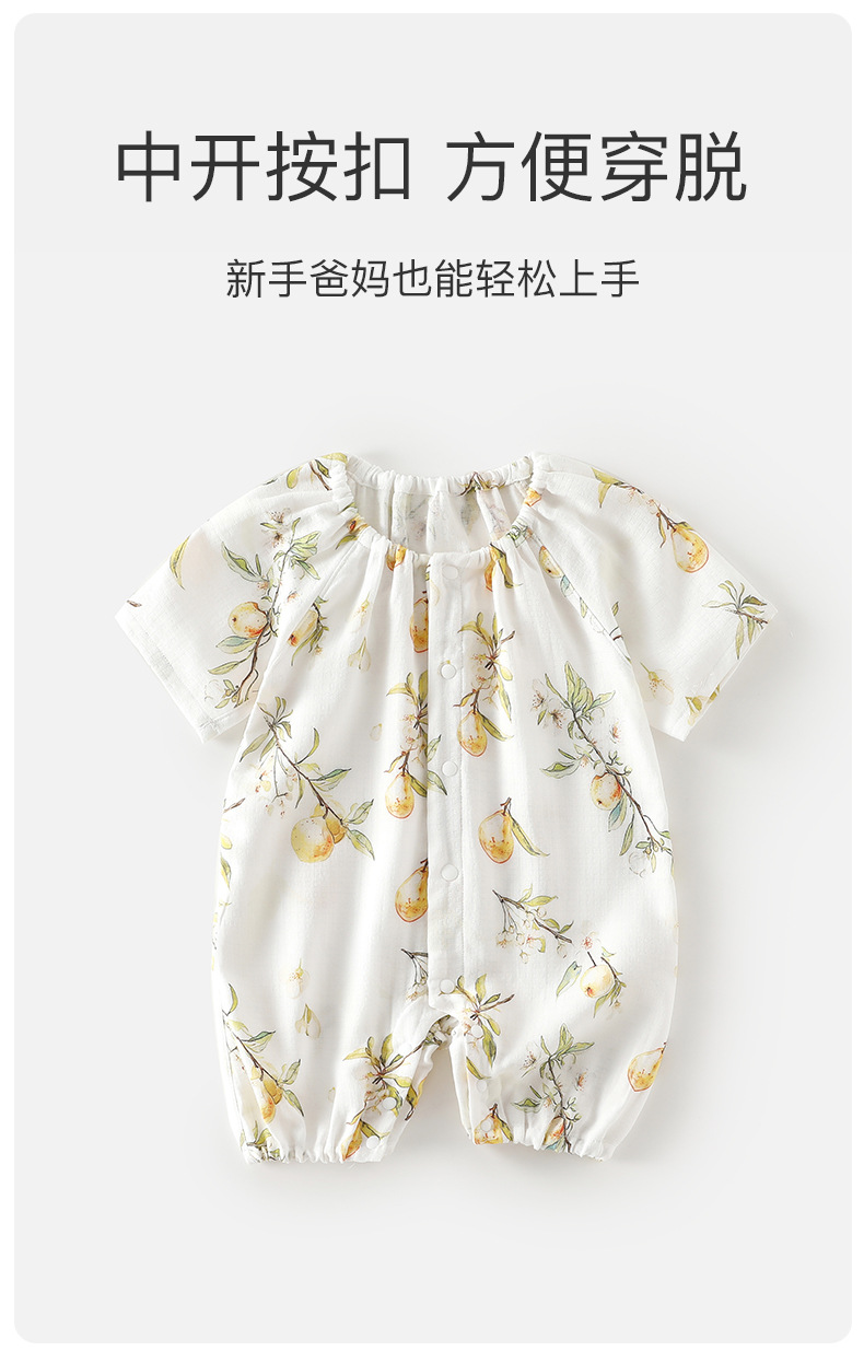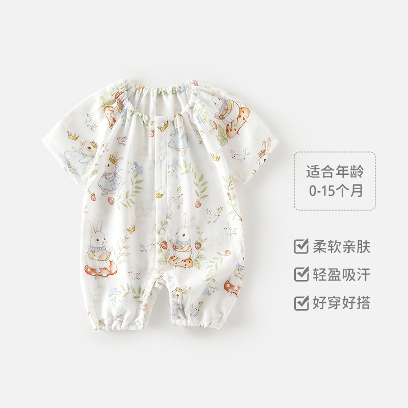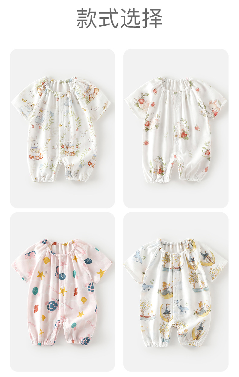 婴儿衣服夏季纱布连体衣竹纤维短袖包屁衣新生宝宝睡衣连体衣爬服