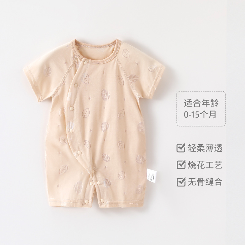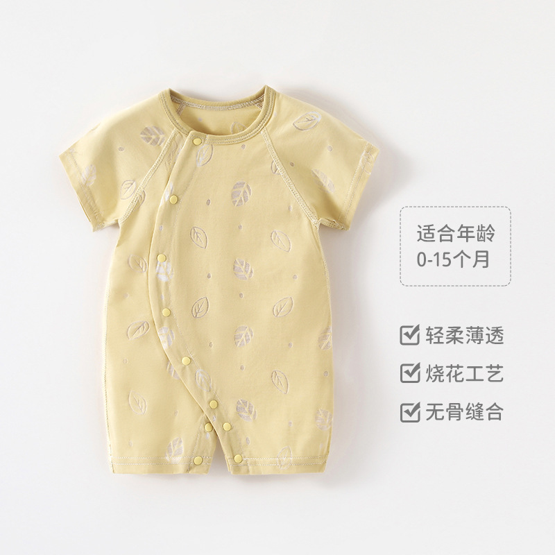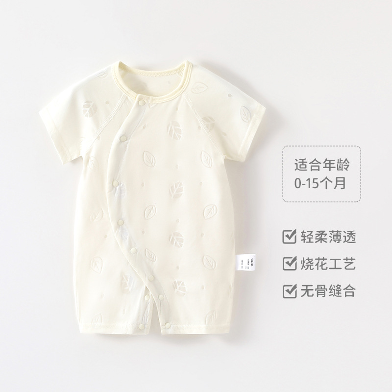 新生儿夏季短袖连体衣男女宝宝薄款开档哈衣婴幼儿透气空调服睡衣