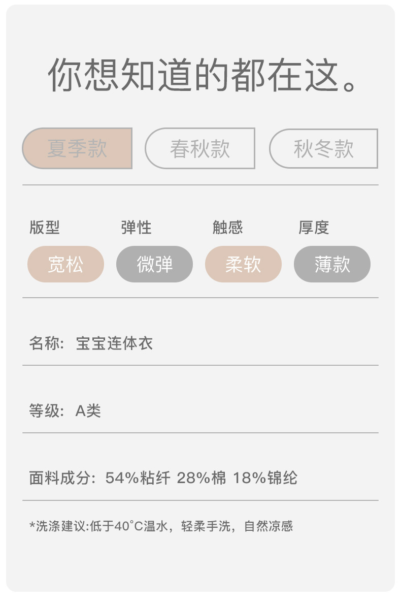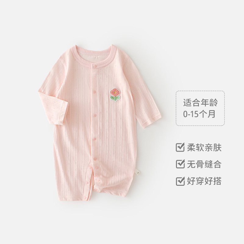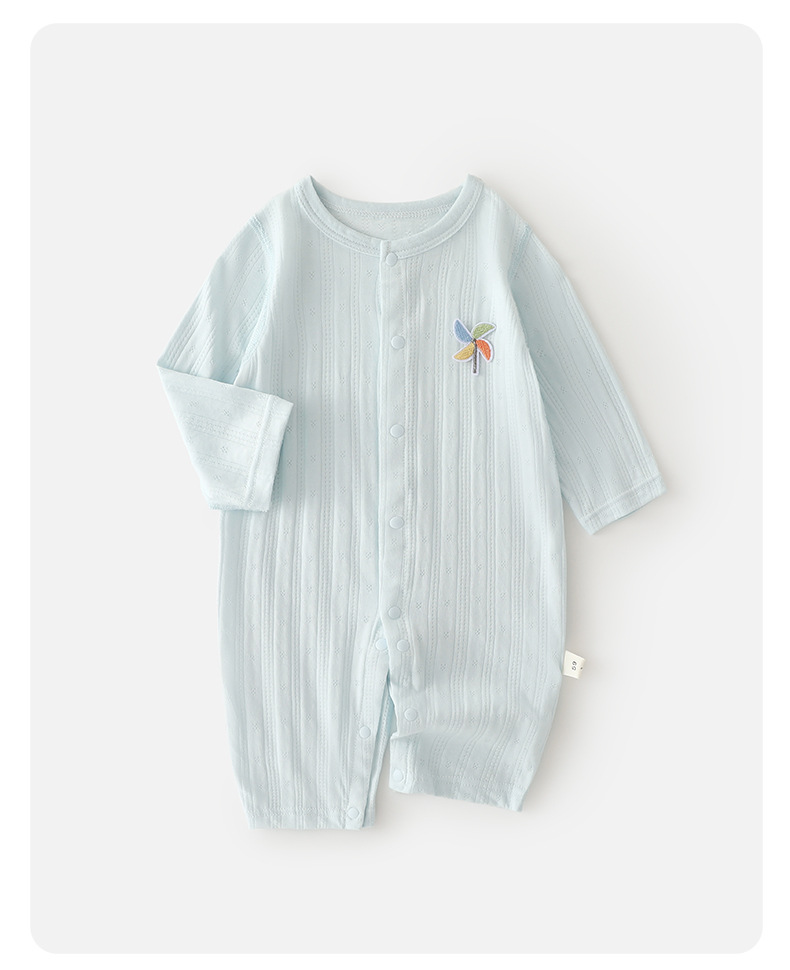 新生儿夏季连体衣薄款长袖空调服宝宝透气弹力哈衣婴儿凉感爬爬服