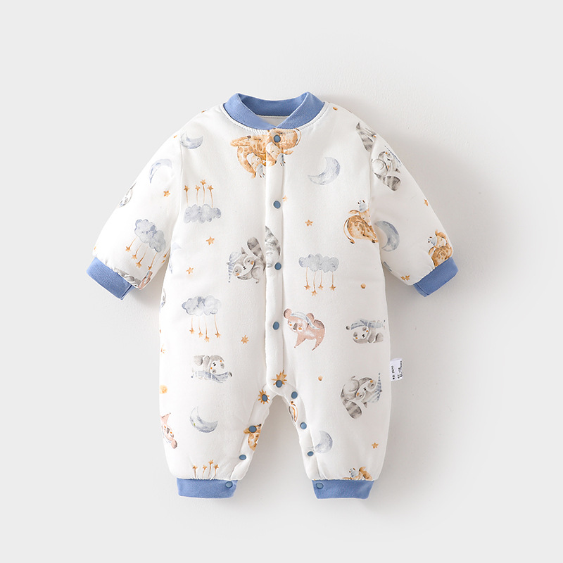 婴儿棉衣服冬装连体衣加厚秋冬季套装新生儿夹棉哈衣宝宝保暖棉服