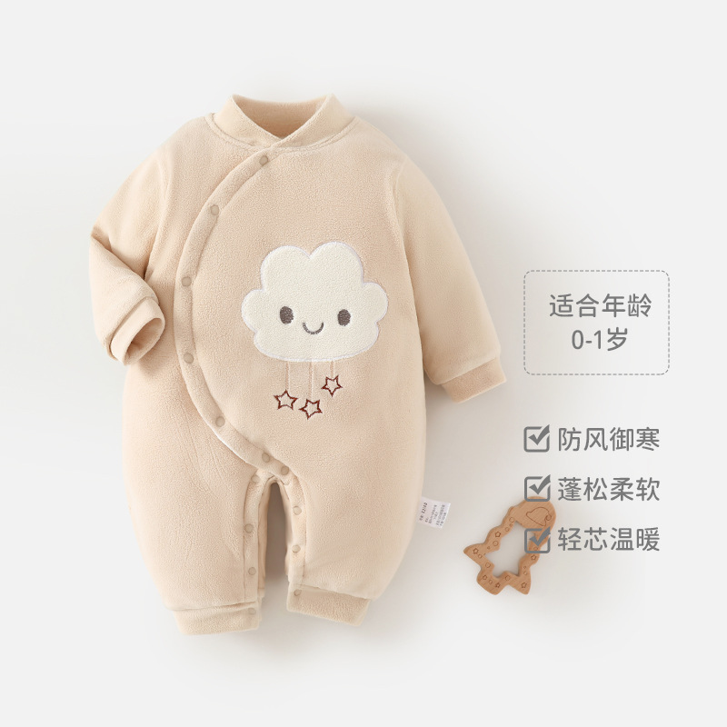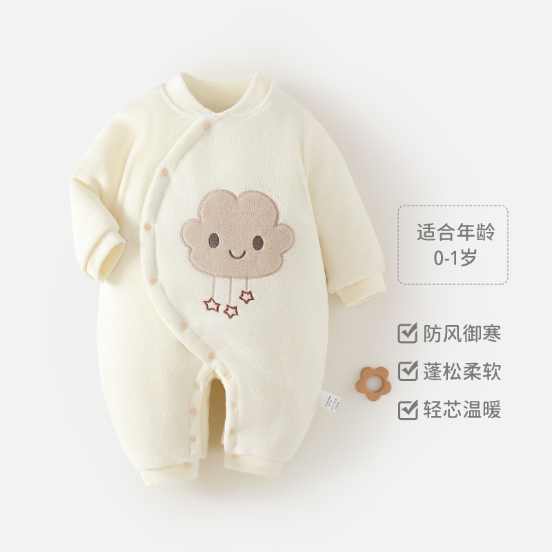 婴儿连体衣秋冬夹棉保暖摇粒绒睡衣新生儿洋气卡通爬爬服宝宝衣服