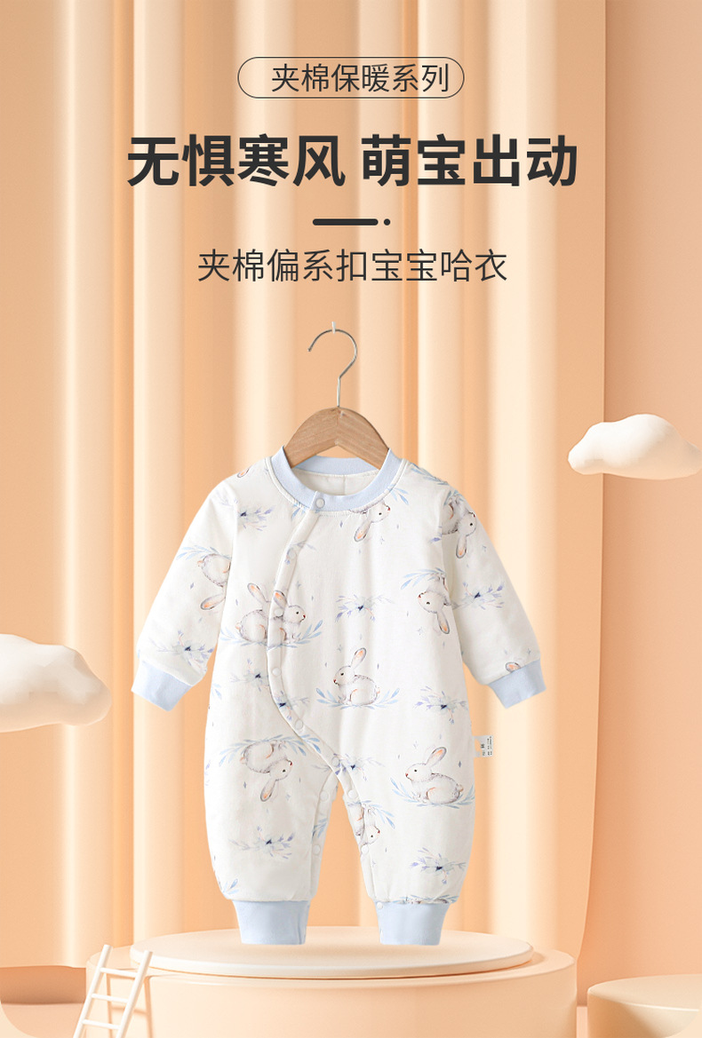 新生儿衣服秋冬120g棉宝宝秋冬季夹棉保暖哈衣外出加厚连体衣服