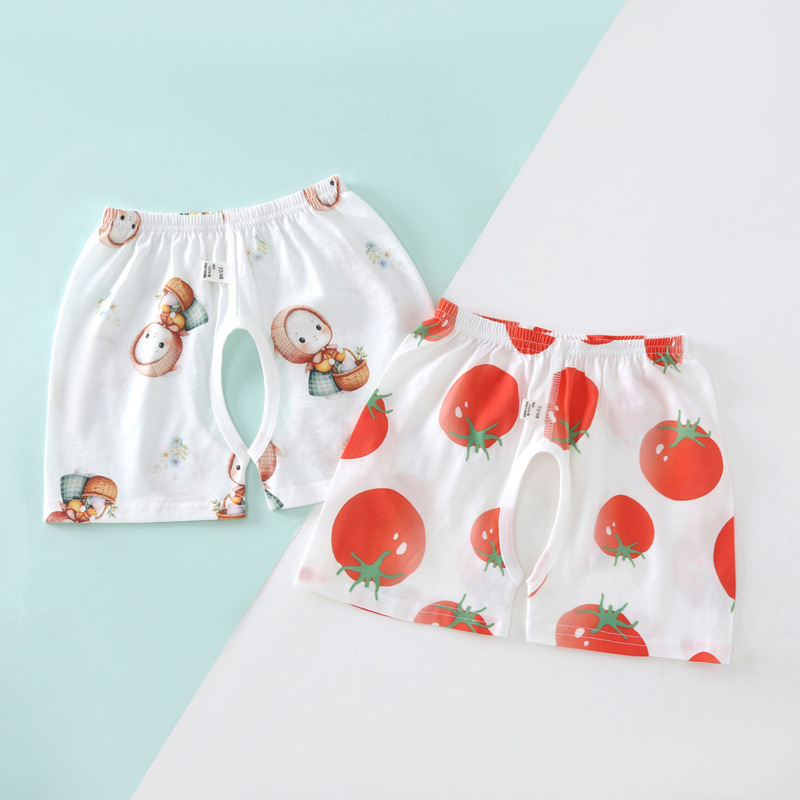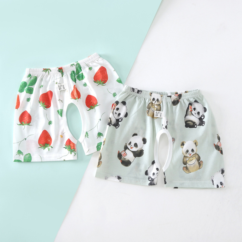 2件婴儿短裤女夏季纯棉男宝宝开裆裤薄款1-3岁童夏装无骨五分短裤