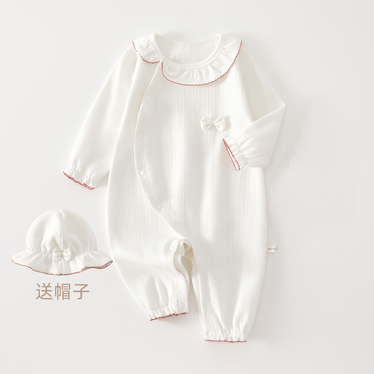 婴儿连体衣秋季新款新生儿衣服带帽长袖包屁衣女宝宝纯棉哈衣外出