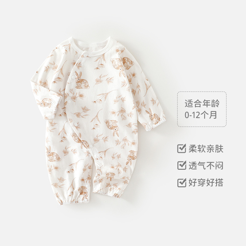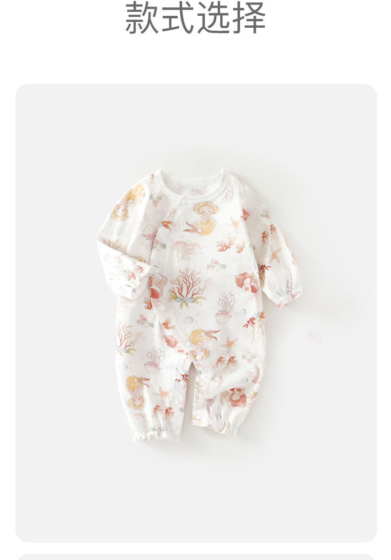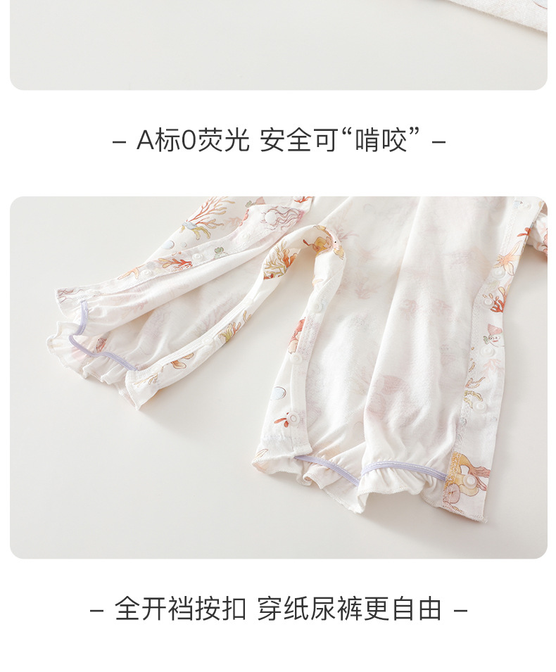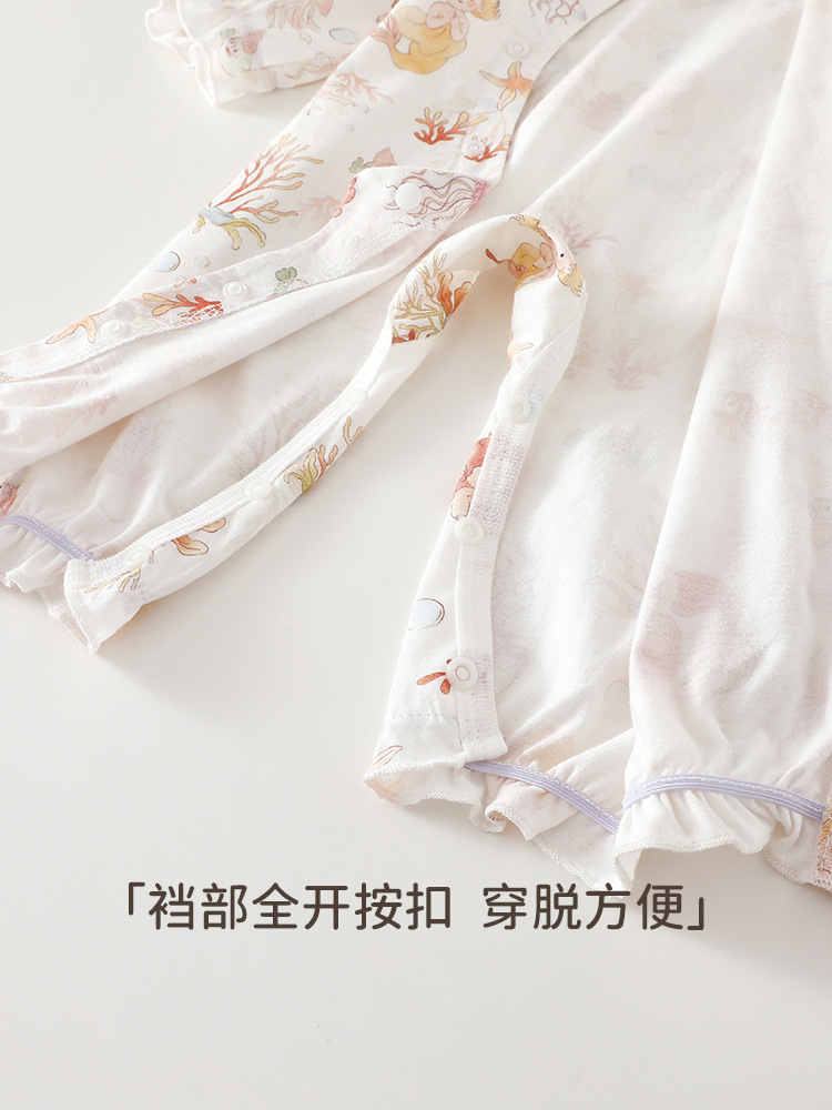 婴儿夏季薄款空调服新生儿纯棉长袖哈衣男女宝宝夏款外出连体衣
