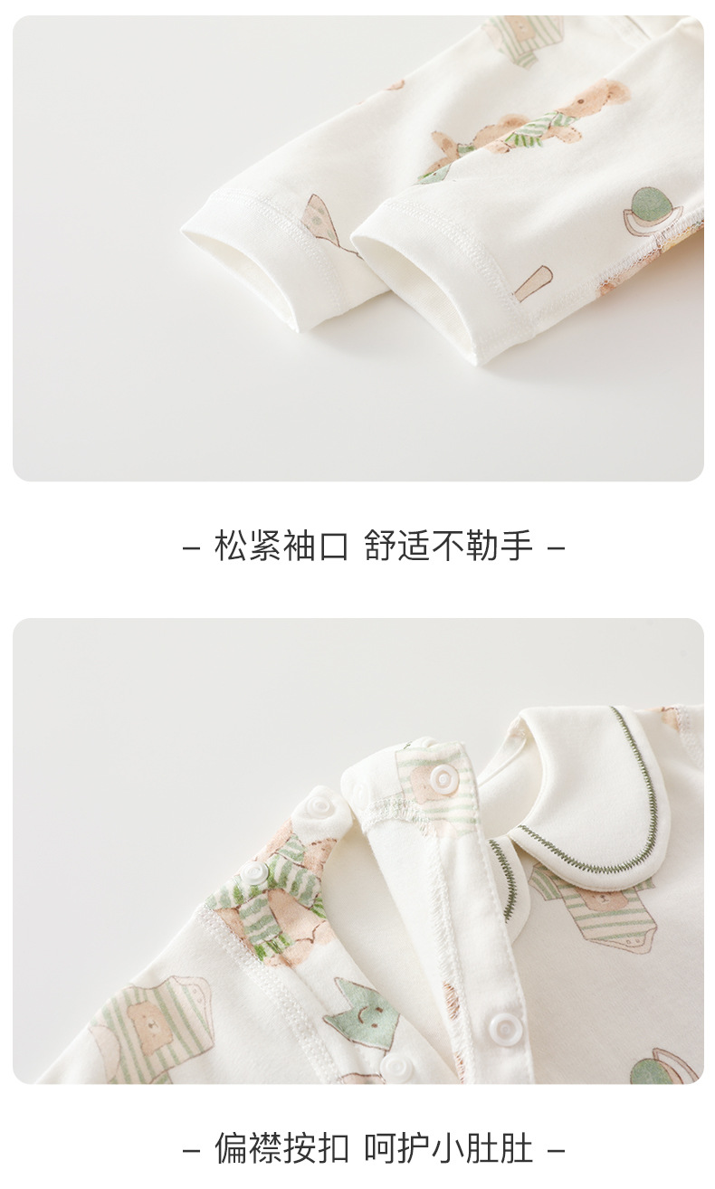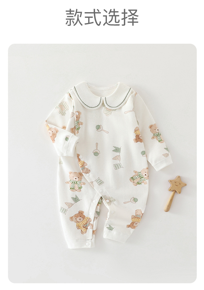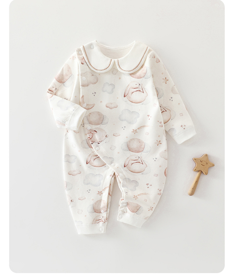 婴幼儿秋季纯棉连体衣宝宝外出翻领衣服新生儿刺绣领长袖哈衣爬服