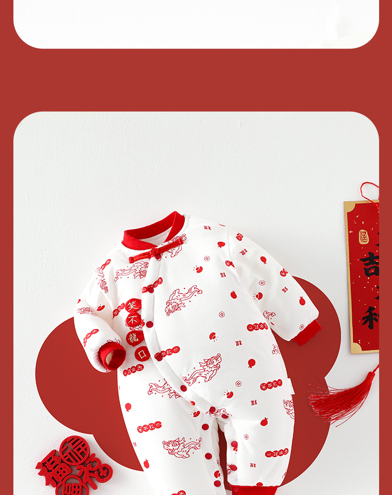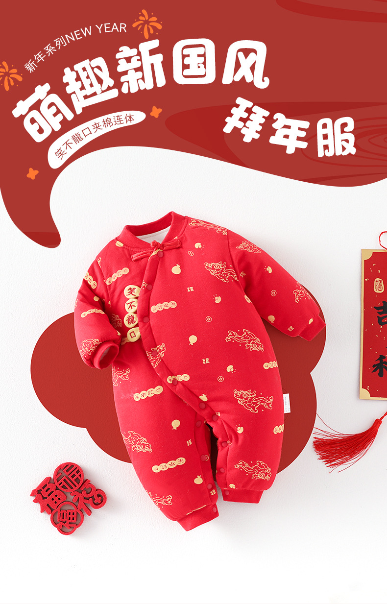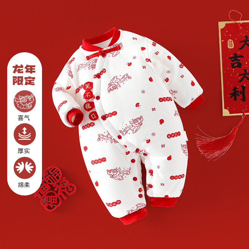 婴儿拜年服冬季礼服百日周岁抓周中国风大红新年装喜庆宝宝过年服