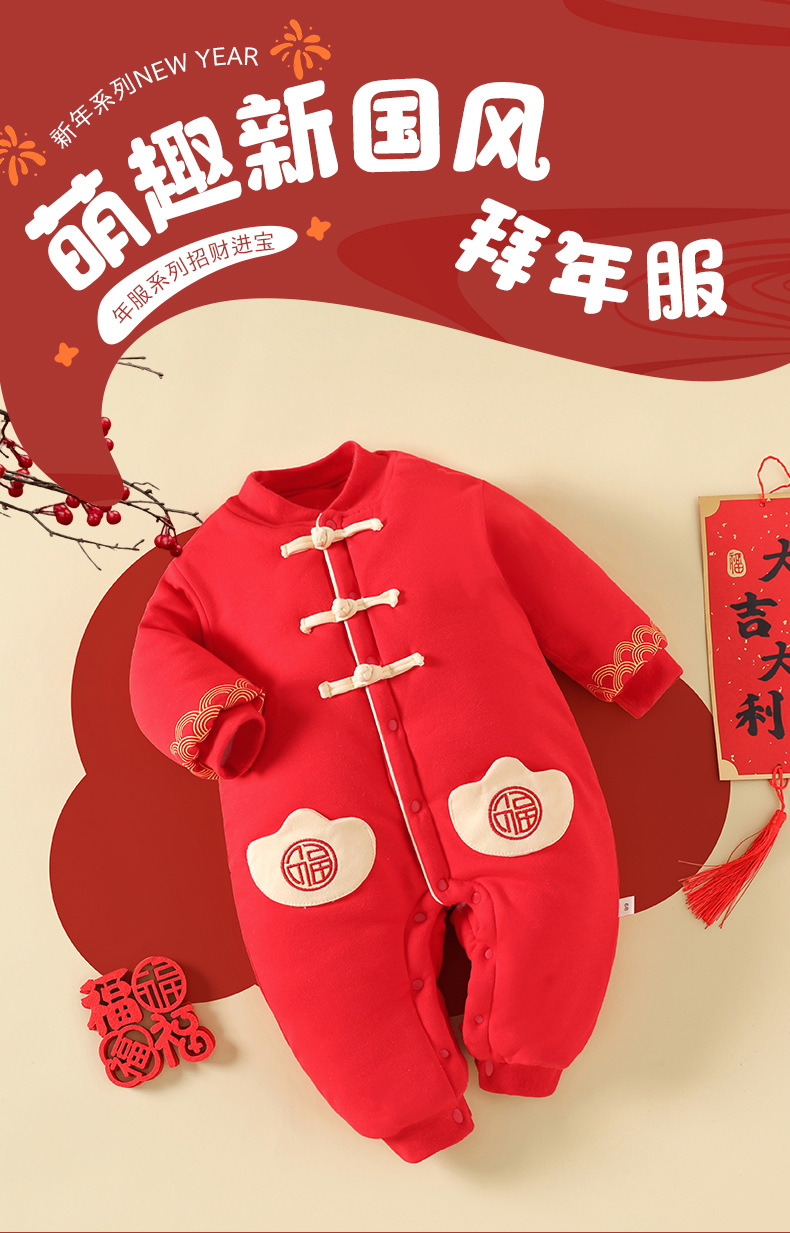 婴儿连体衣拜年冬款女新生儿夹棉秋冬过年加厚男宝宝新年衣服冬装