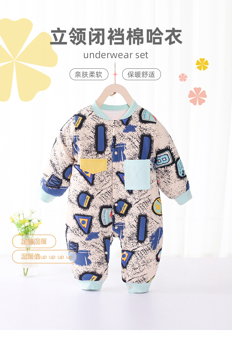 婴儿夹棉连体衣纯棉秋冬季保暖棉衣新生幼儿加厚哈衣宝宝衣服冬装