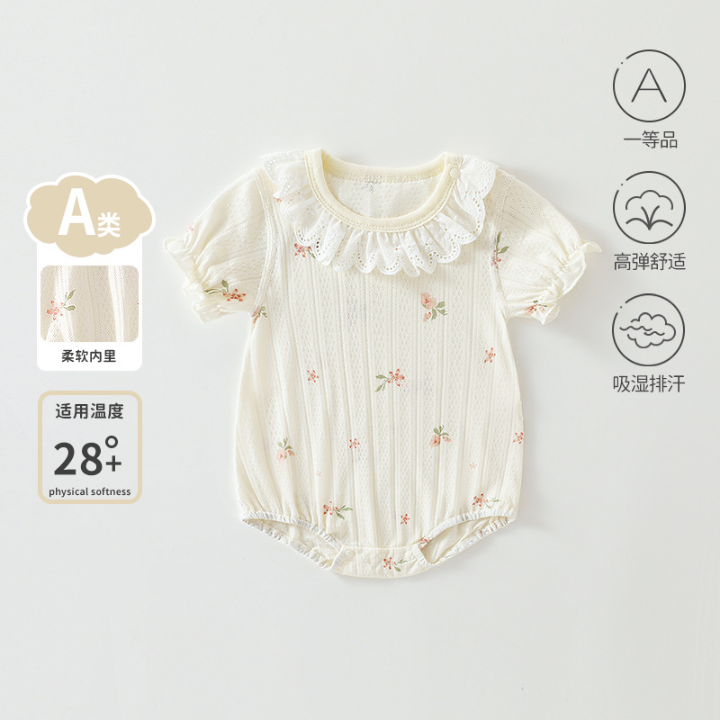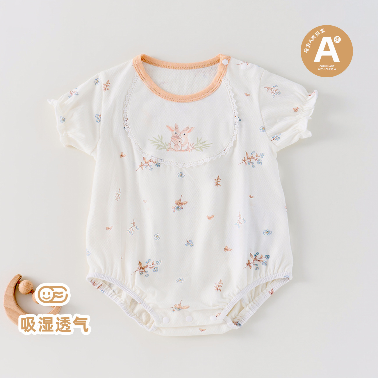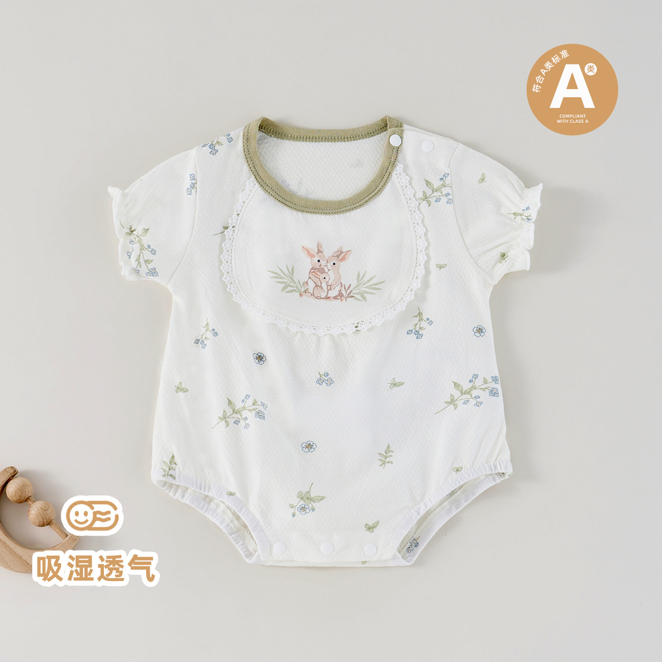 初生婴儿夏季a类短袖包屁衣女宝宝可爱公主婴幼儿超薄两件套