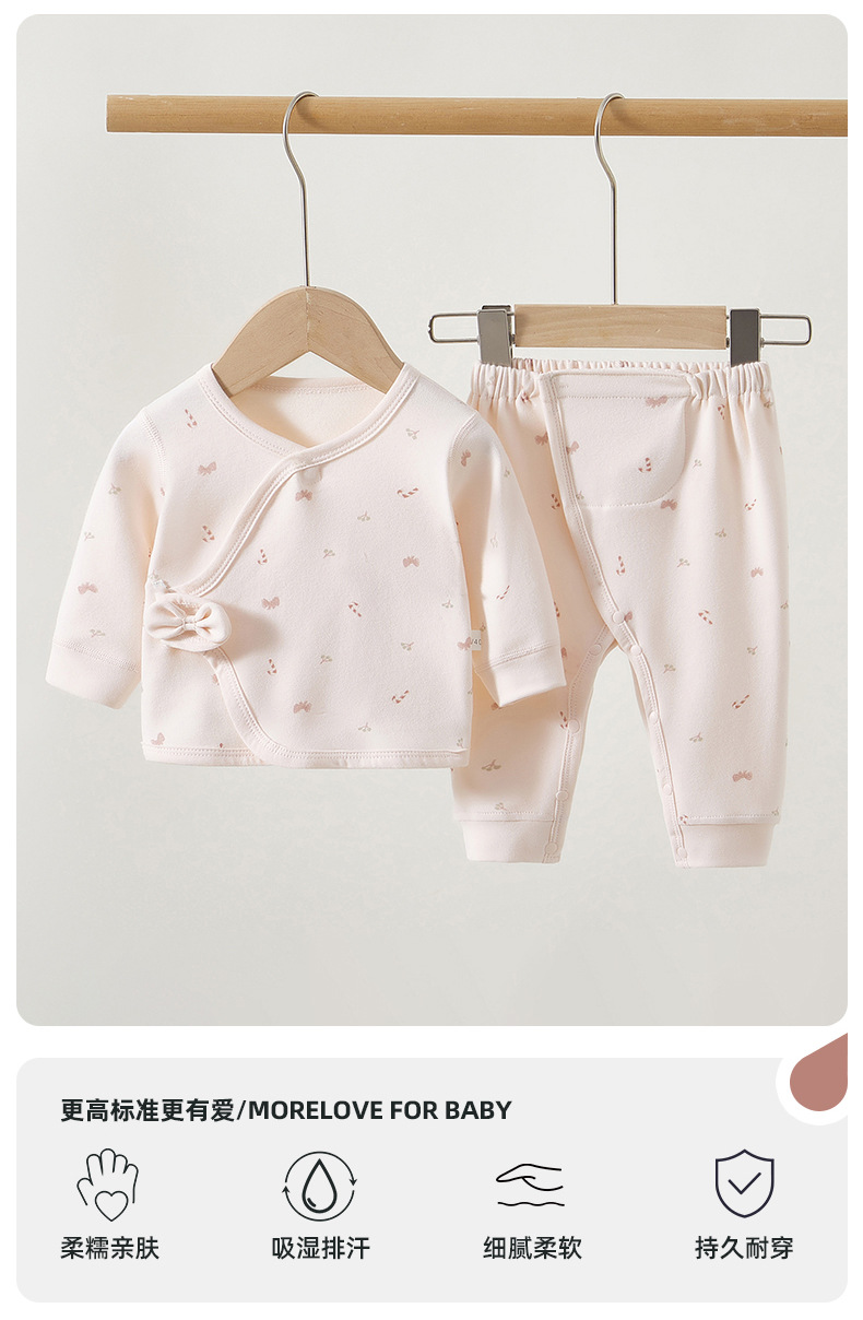 新生儿婴儿衣服纯棉a类分体套装秋季0-6个月女宝宝柔软内衣魔术贴