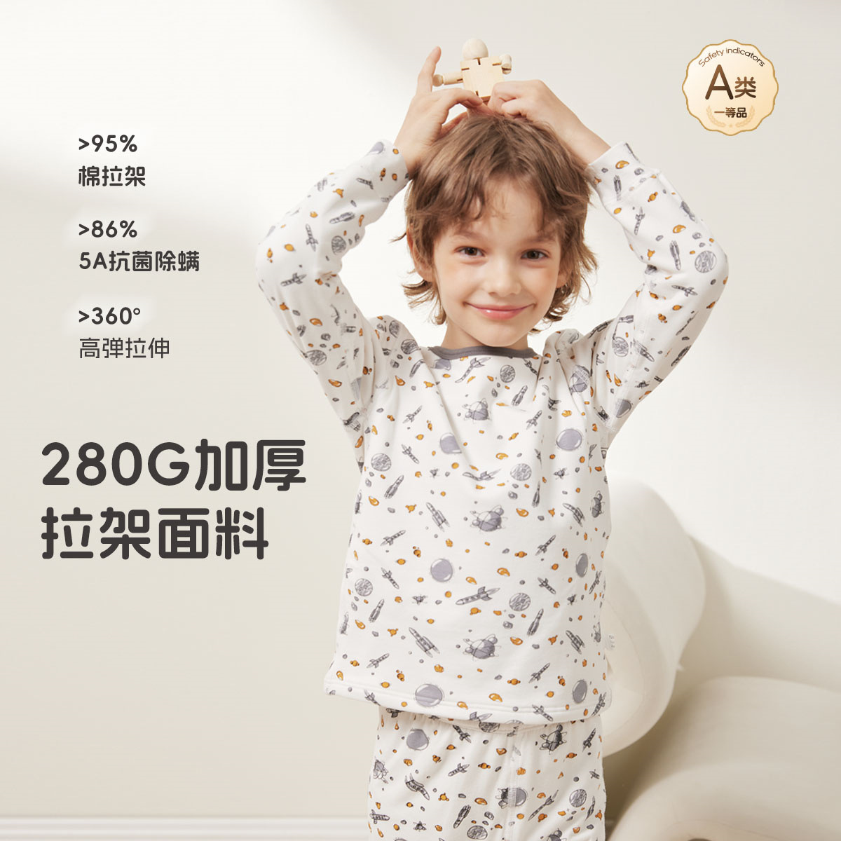 莫浠莫24A类亲肤羊毛拉架儿童秋衣秋裤家居服90-120卡通保暖套装