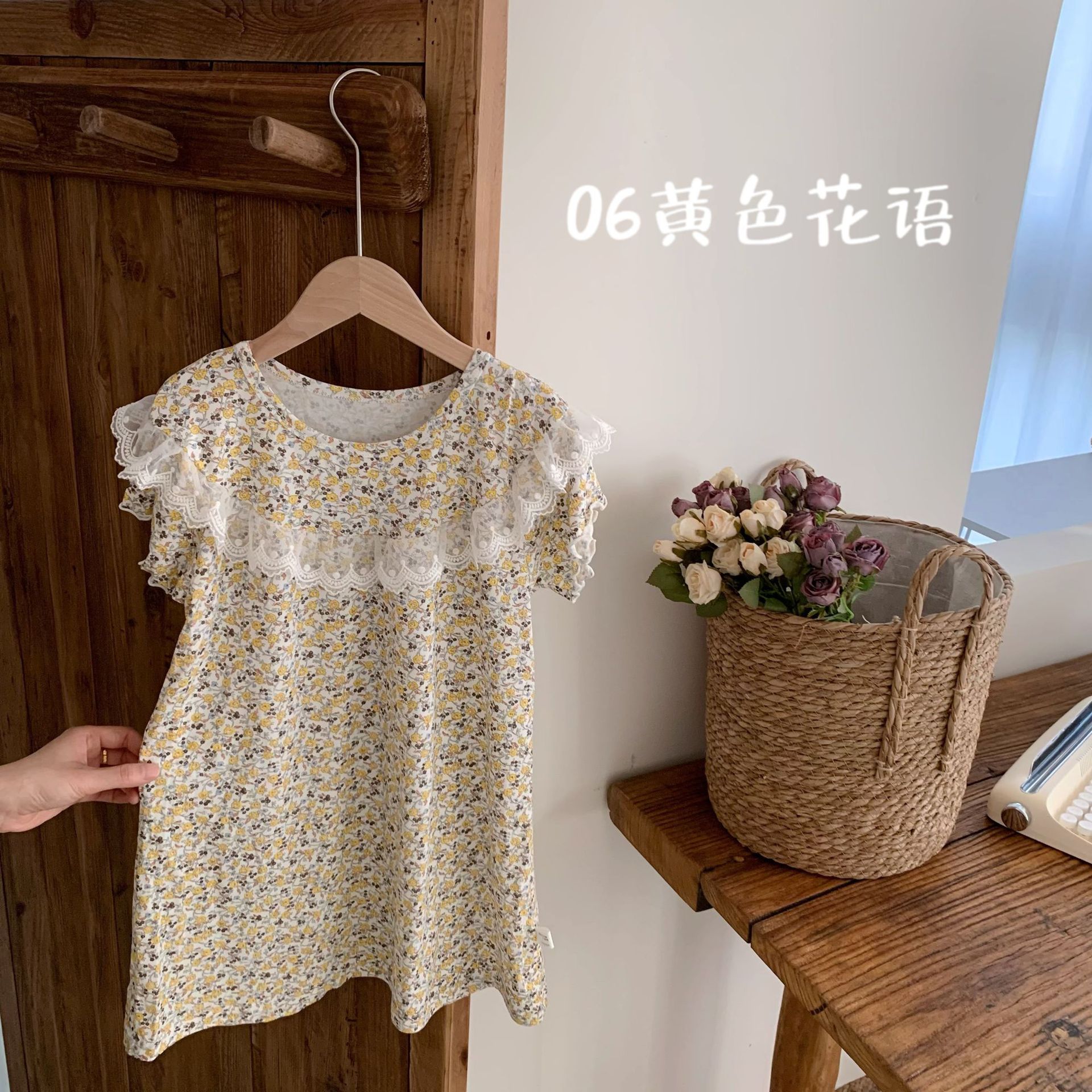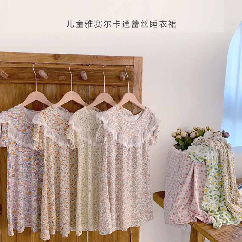 (定制)女童连衣裙夏24新款女孩洋气蕾丝花边公主裙子碎花睡裙