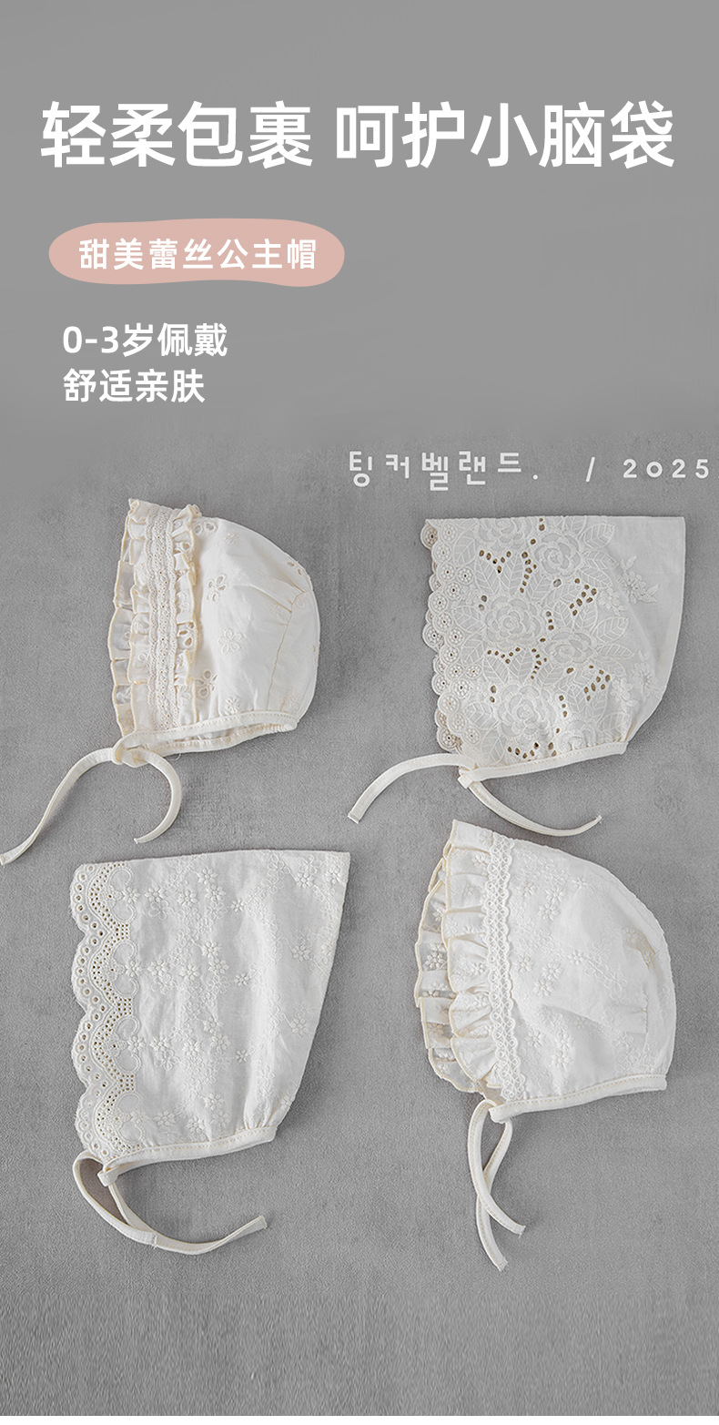 ins风韩版婴幼儿洋气碎花遮阳帽公主蕾丝春秋款女宝宝甜美宫延帽