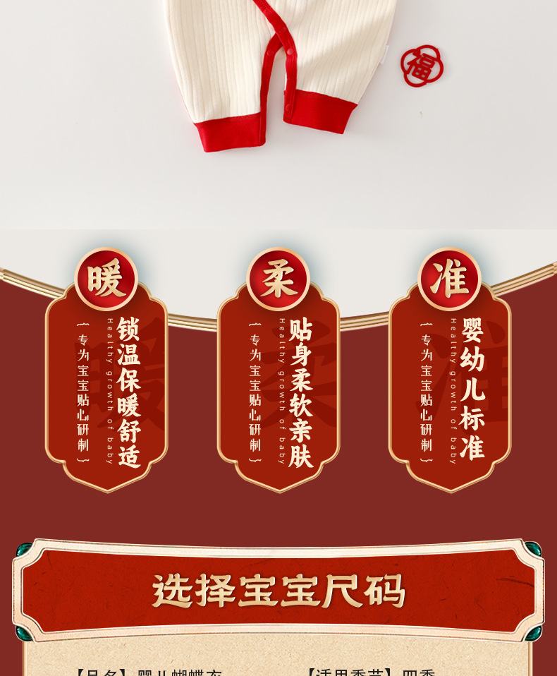 婴儿纯棉a类春节拜年服婴童装新生儿服饰初生宝宝爬服蝴蝶衣