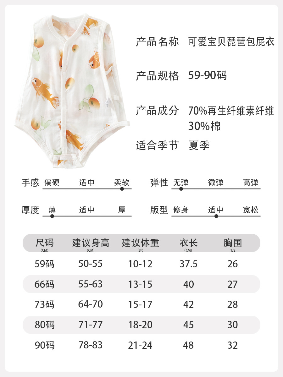 竹纤维新生儿包屁衣冰爽宝宝爬服婴儿衣服新生儿家居服婴儿包屁衣