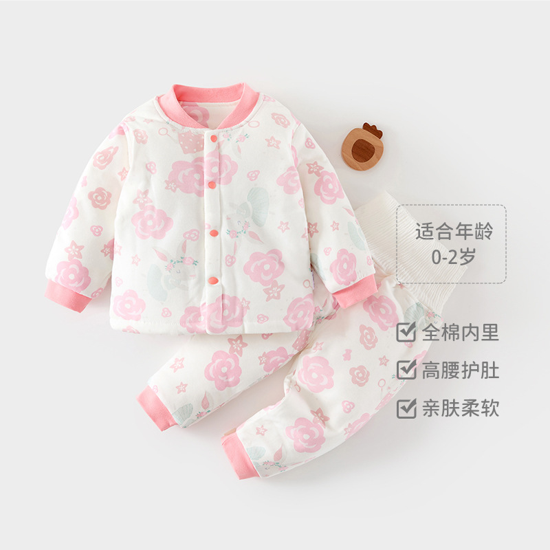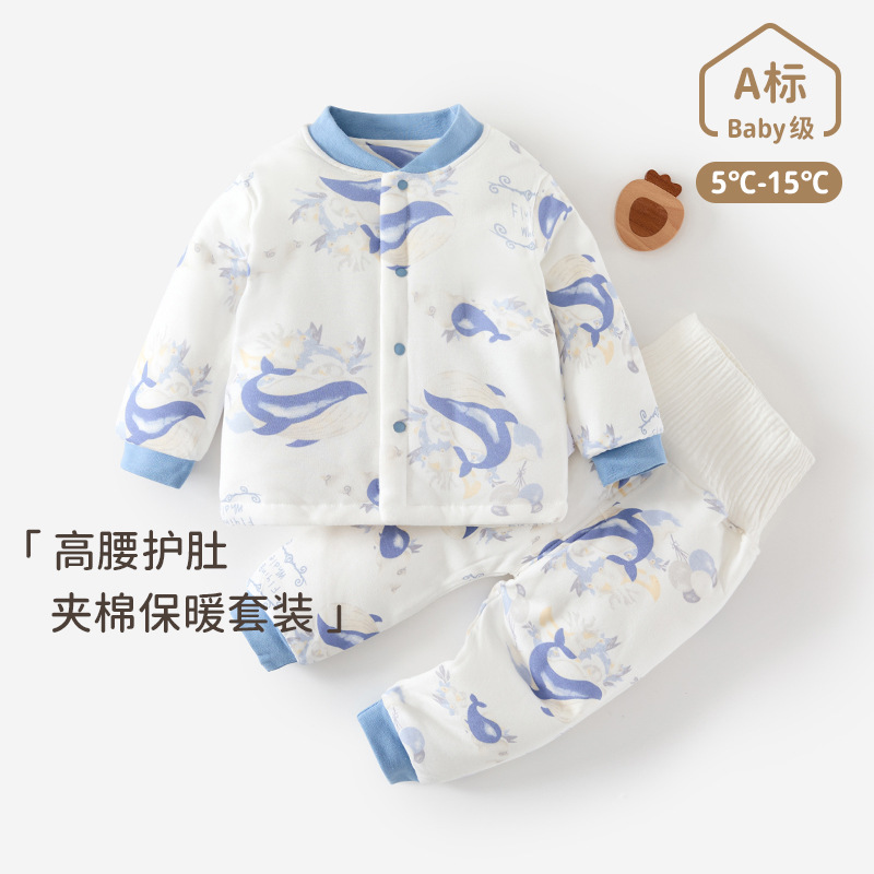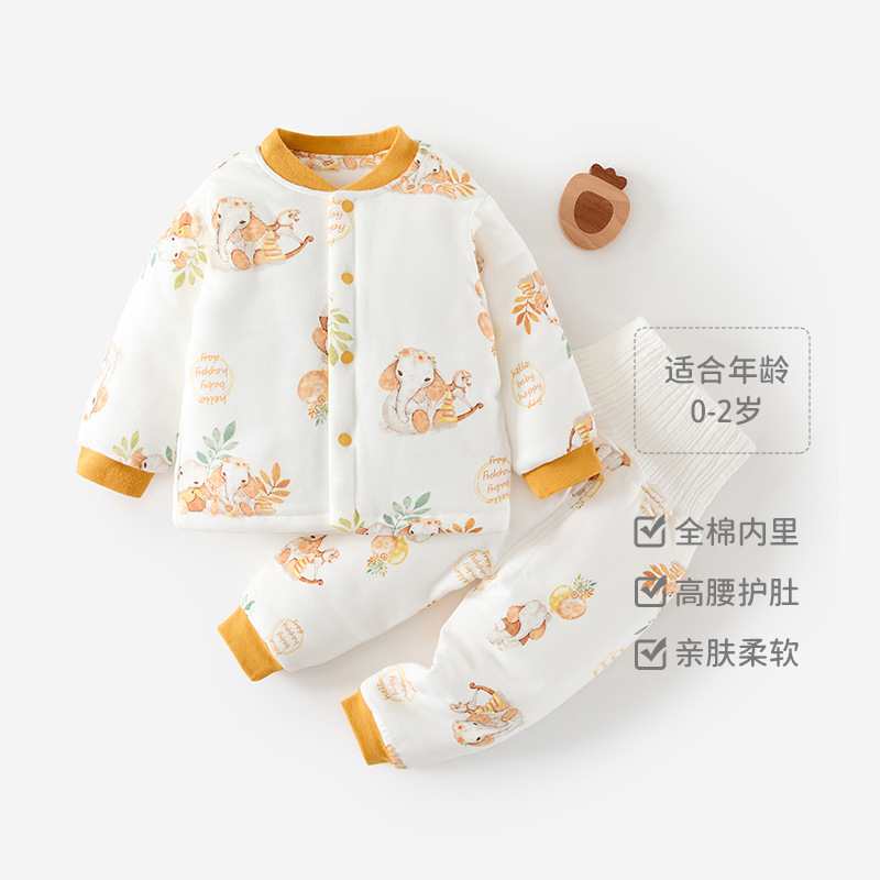 婴幼儿春秋夹棉套装秋季新生儿保暖秋衣秋裤宝宝分体内衣a类儿童