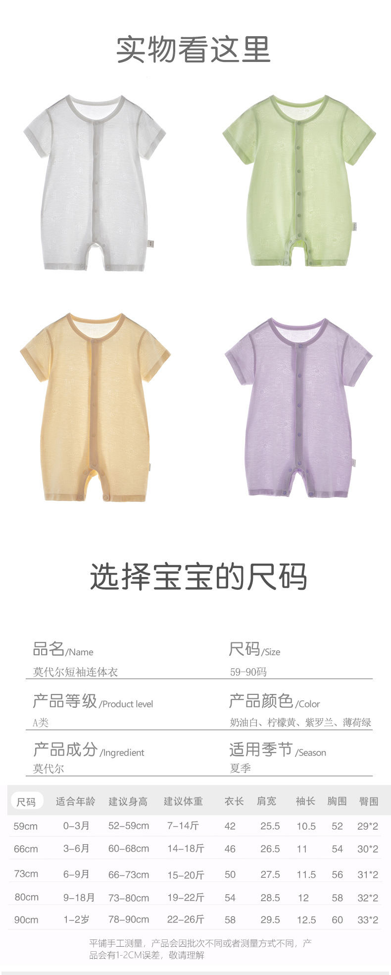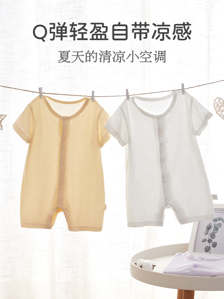 婴儿夏薄款衣服莫代尔新生儿纯色外出连体衣婴儿服a类短袖连体衣